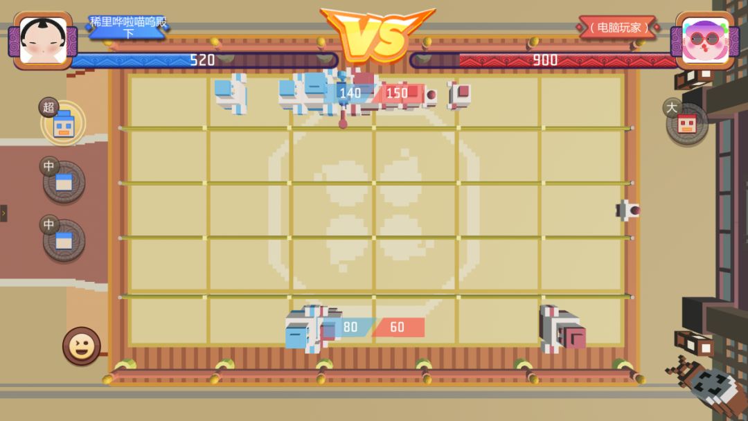 相扑手一旦走到对面底线,就会对对方造成伤害,而可以投放的相扑手重量则是随机刷新,如何更快挡住对手并突破对手的防御,就要看大家够不够手快啦!