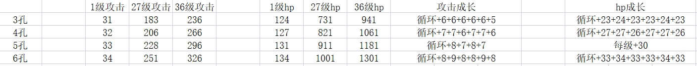 1孔2孔没什么用 前期刷个性格代步就放了 我这里给出无装备3~6孔36级龙的面板 大家适当比较