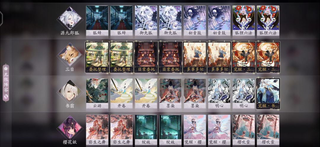 至于打法,前期四个都可以随便卖(樱花有形态就算了),中期多事多忙和狐狸六法挂上,靠御先狐和樱花形态差不多可以撑过去,后期3个委托正常都能做完,第一张臭猫觉醒选第二个(即用一张委托抽两张牌)的线索,第二张根据局势酌情选回血或复活,书翁觉醒一挂,樱花控场就行了。