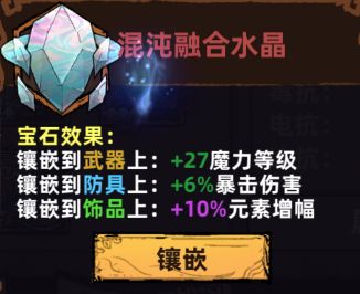 然后使用法杖让平a能同时暴击和吃增幅,所以堆暴击率,爆伤,魔力等级,和元素增幅(理论上是不用堆暴击率的,因为我们要追求极限伤害,暴击率只会让伤害更容易出现而已)这三个要素哪个比较低先拉哪个(比如15%爆伤和15%元素增幅,根据自身面板选择)