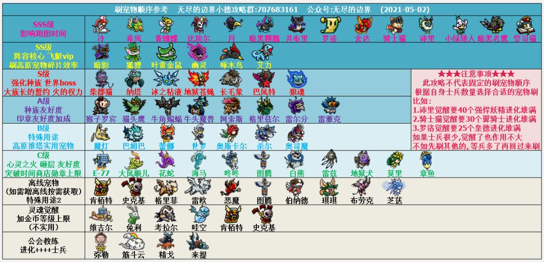 无尽的边界刷宠物顺序(2021-05-02)