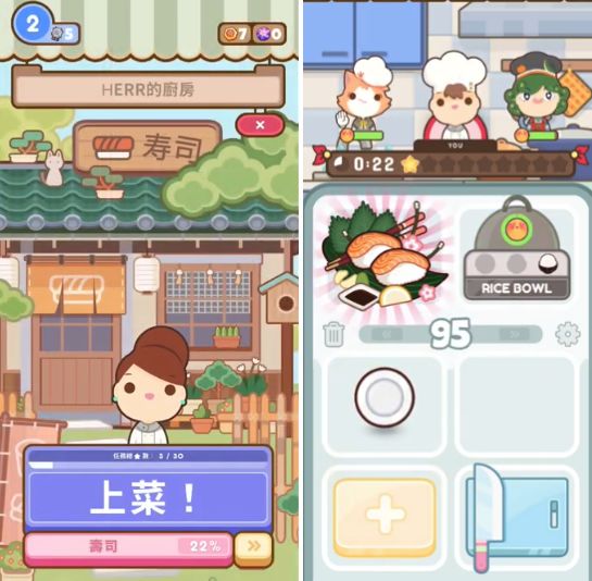 《Too Many Cooks(大厨不止俩)》这款游戏也是如此。你需要在有限的时间内根据订单做出多款不同的菜品,取材、切配、煮饭、翻炒、端盘洗碗等这些做菜琐事都要亲手来完成。当菜品复杂起来,手忙脚乱就是家常便饭。