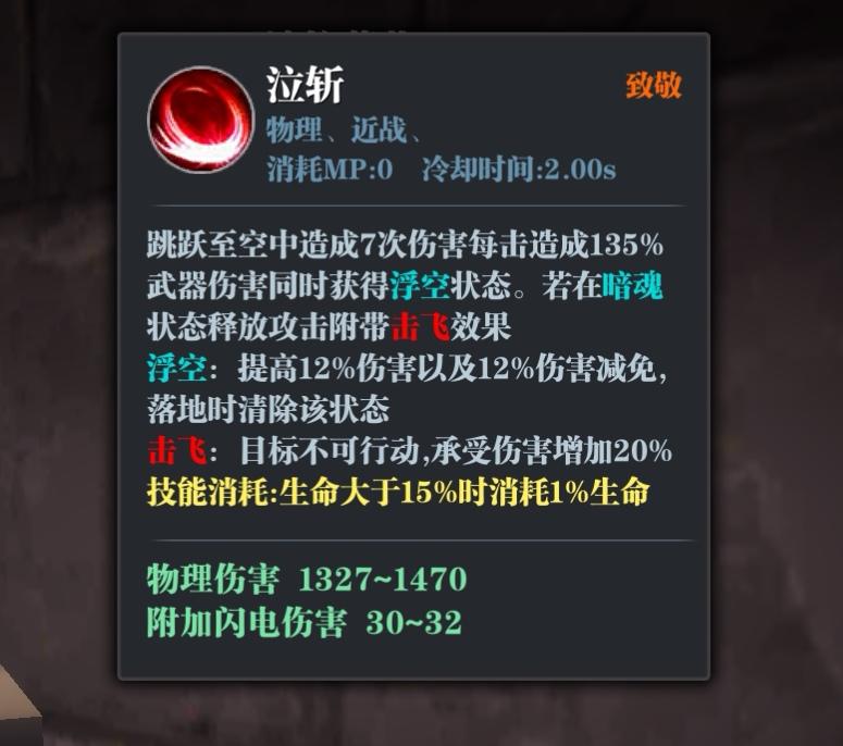 2.泣斩主要吃空中的12%伤害加成和12%减免,一般起手泣斩,然后空中点烈斩触发暗魂,然后接千灵空中爆发输出