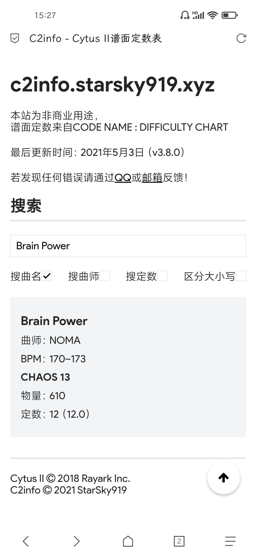 Cytus II网页版谱面定数表