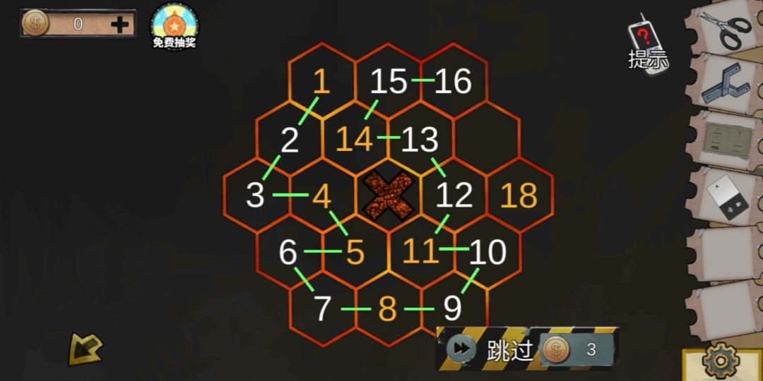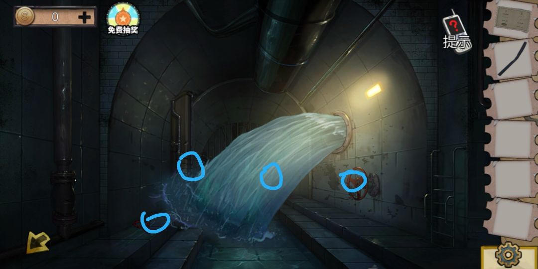 13、下水道一号里面的3机关解法。仿照从门卫室垃圾桶里得到的纸张上的图案完成就行。打开后得到钩子。钩子和细绳结合得到钩绳。