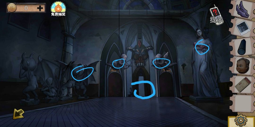 点击右边圣母像,结合照片,放上玩偶头;左边天使上放翅膀。