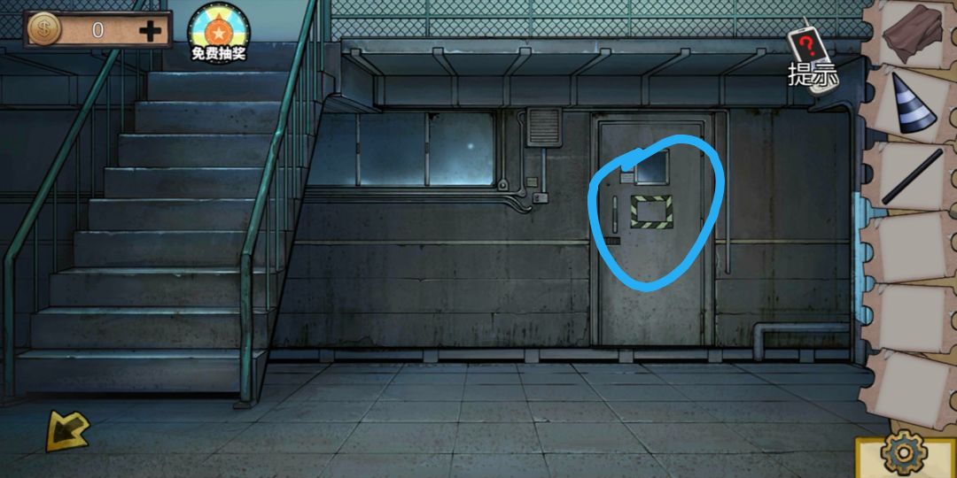 地上捡到把手,柜子里找到千斤顶,右边是暂时不能用的机关和铁钩,墙上是配电箱。