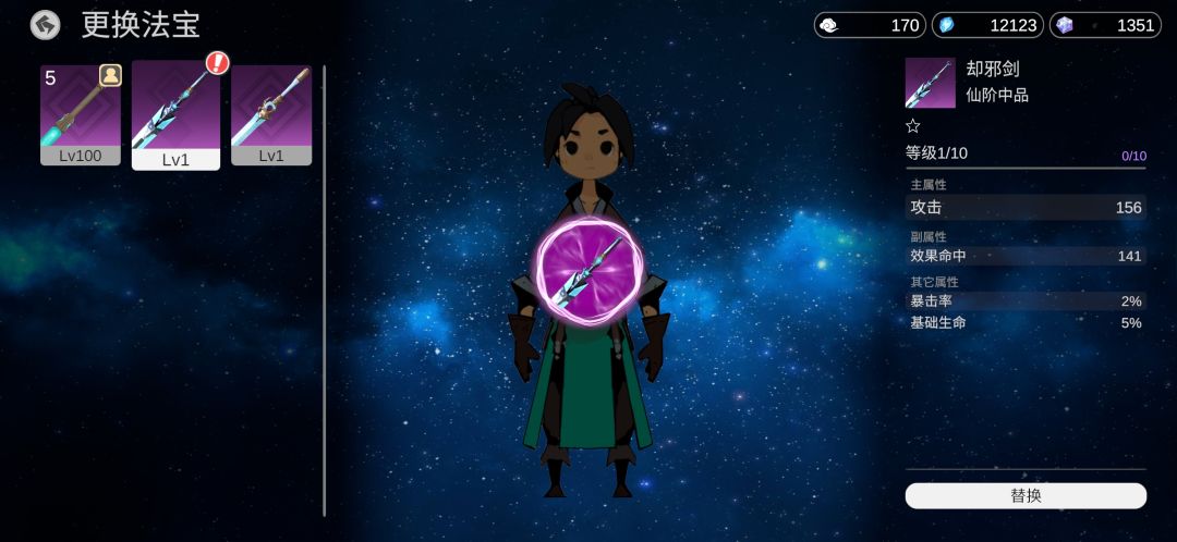 一个是中品,刚拿到但是精炼0次,等级比下品高一点但是加的属性是"效果命中"(也不知道有没有用)。