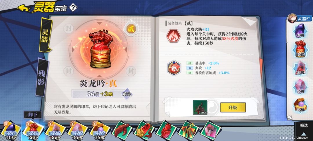 这时我们发现摆在火二面前只有一条路可以走:提升火攻属性和优先升级灵器和残影