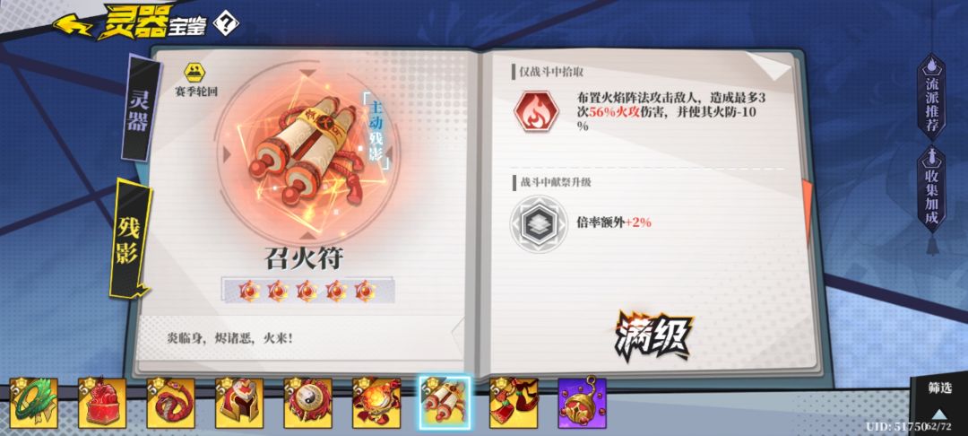 这决定了火二的主要输出方式是靠触发残影和灵器效果而非依靠技能输出。