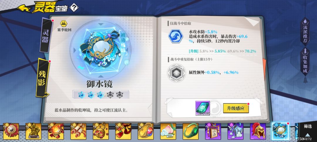 (御水晶的水攻触发可以通过水系主动残影触发或龟壳触发)用两个残影位置换满级八十的暴击伤害是稳赚不赔的。
