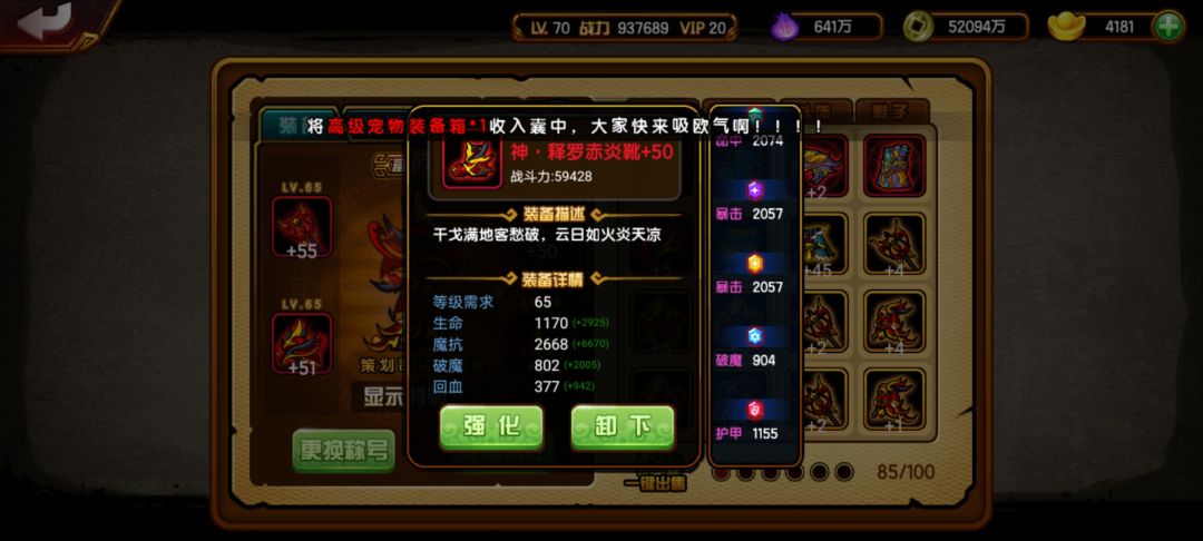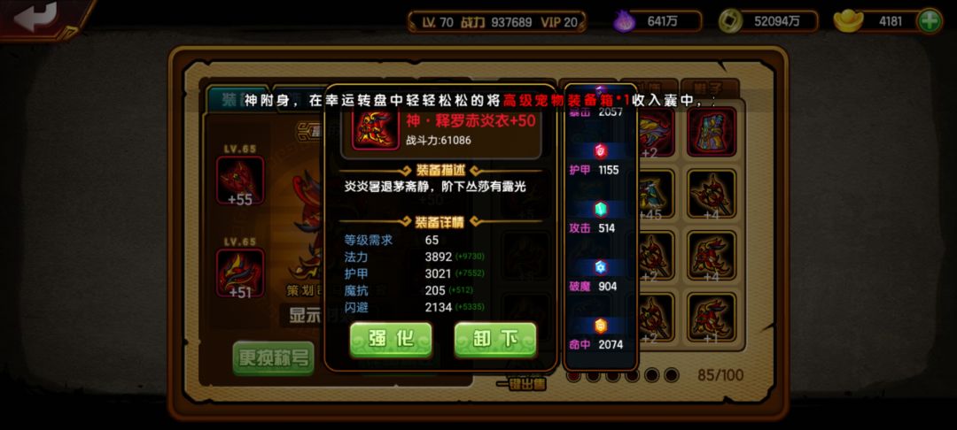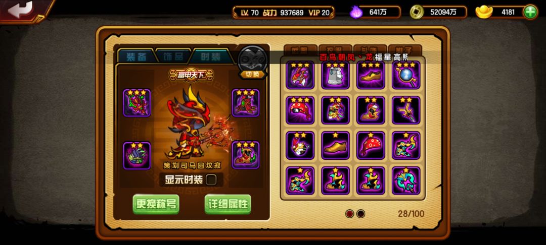 接着就是时装搭配了 由于糖糖这个角色触发不了通天所以这里用的是三个通天加一个噬魂 噬魂可以多一些暴击