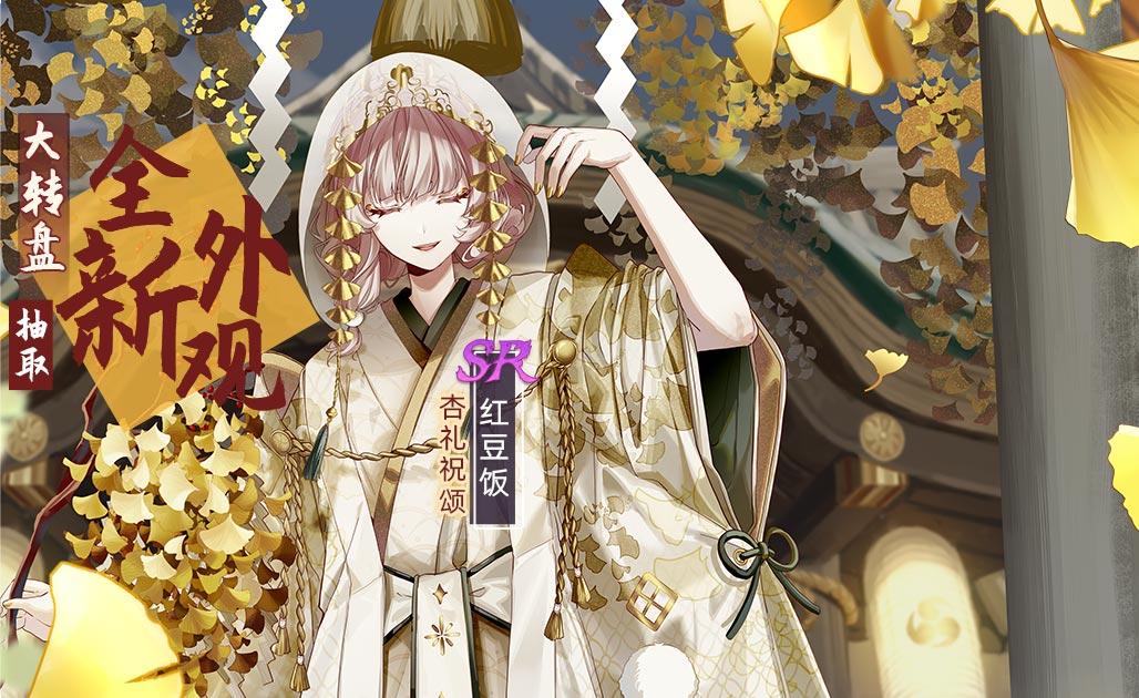 活动描述:活动期间,御侍大人使用道具参与大转盘,可获得丰富奖励,转动指定次数还可获SR飨灵红豆饭全新外观-杏礼祝颂以及大量游戏内豪华道具。