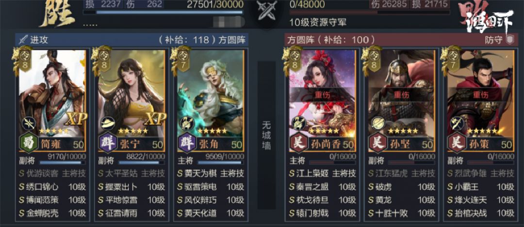 虽然该技能不具备增伤和直接伤害能力,但可显著提升队伍的续航,特别是吸血效果较少的法师队伍,配合张宁后可较少治疗技能的搭配,配置更多输出技能。伤害限制的效果也对法师队作用较大,谋略系武将虽然爆发都比较可观,但坦度普遍较低,低兵力时也无法造成有效伤害,张宁的技能可一次性解决这两个问题。