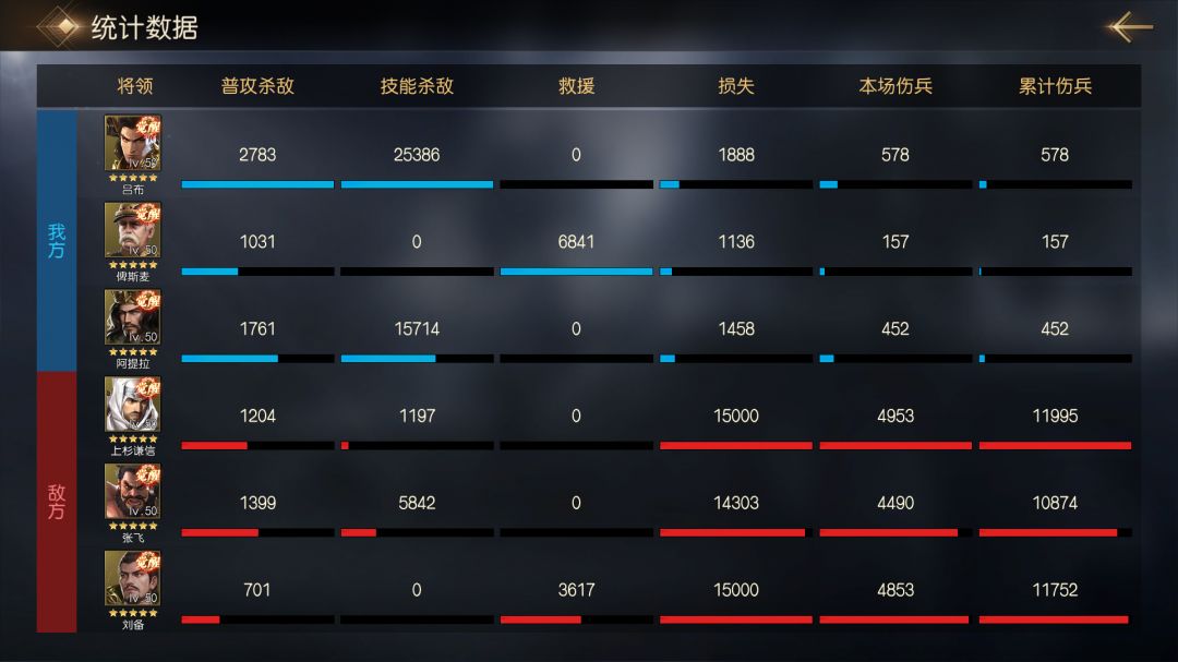 通过战报可以看出,吕布利用大帝庇护的会心加成,在开局的爆发上限并未降低,反而有了一定提升,当队伍脱离飞将有效时间后,在俾斯麦的追击加成下,其他输出技能仍然造成了极高的物理伤害,并且队伍战损依靠俾斯麦的救援得到显著降低。