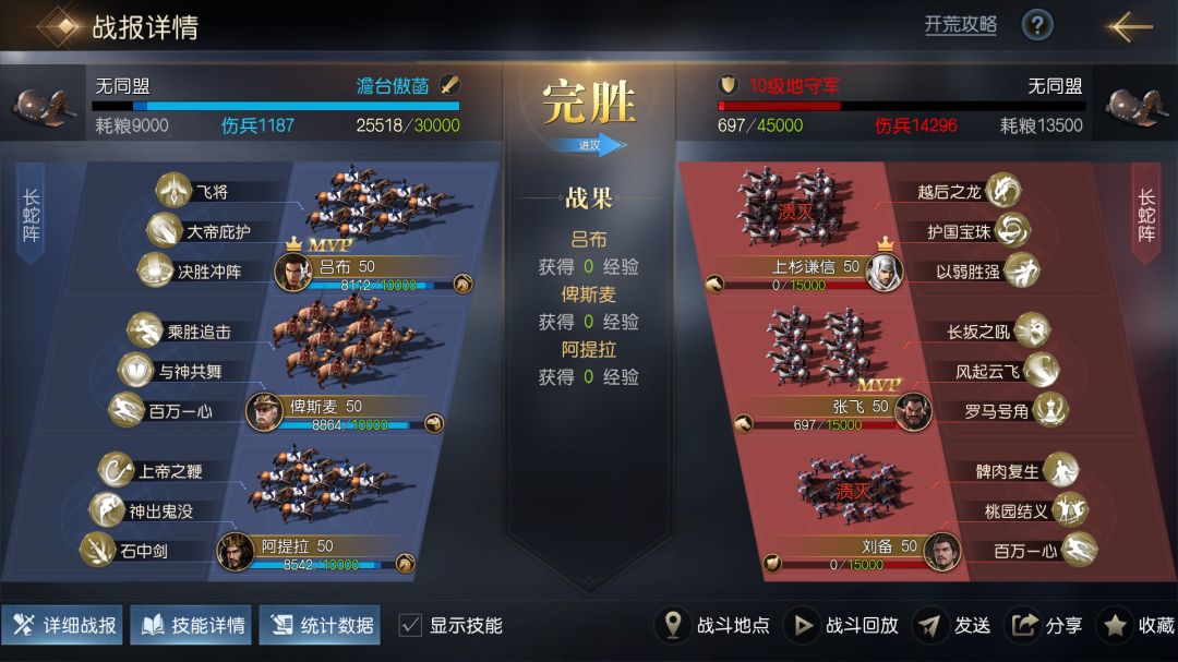 俾斯麦这名将领的技能可为己方全体恢复兵力,并提升2回合追击技能的伤害,正好替换美尼斯的位置,虽然队伍缺少了稳定的先手优势,但续航的持续输出都得到明显提升。