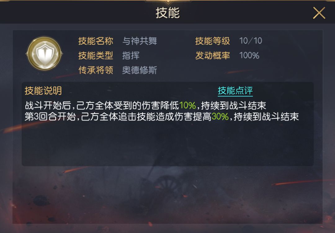 二技能推荐与神共舞,该技能可全程降低己方受到的伤害,并从第三回合开始提高队伍的追击技能伤害,能保证该阵容脱离前3回合的爆发期后仍能造成可观的输出。