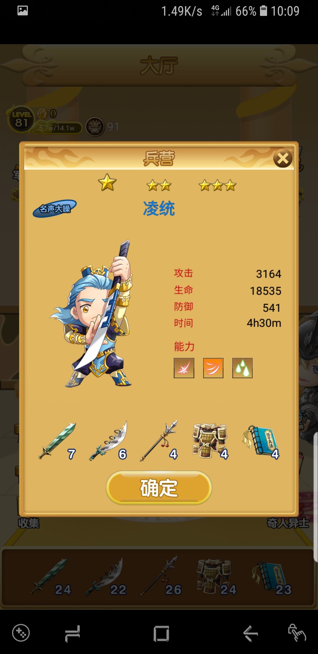 吐了,真的太看脸了。诸葛亮抽了3,40次都不出。然后就是高闪避+高回血打了10分钟都过不去。一把10分钟,我凌统都出现一次8连击,一次7连击都还没过。