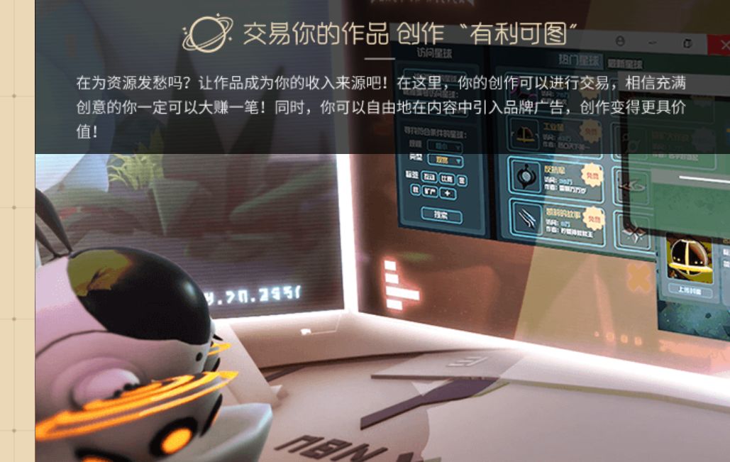 拥有自己的星球(类似于家园),星球中有自己的房间和农场等。开始应该处于未完全开发状态,通过提升等级解锁更高级的建造材料和地域。
