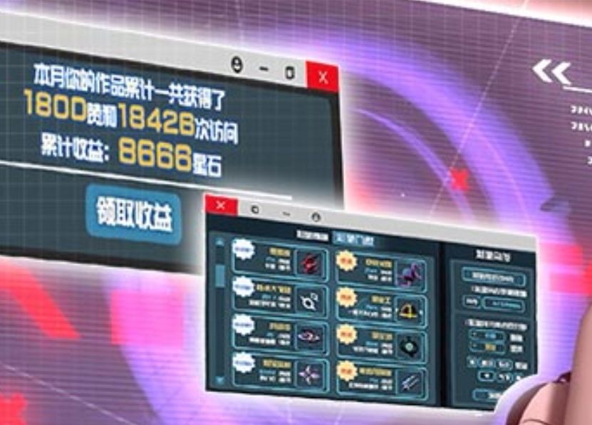 交易货币为星石,经济来源也包括创作作品,按点赞量和访问次数决定收益的多少。