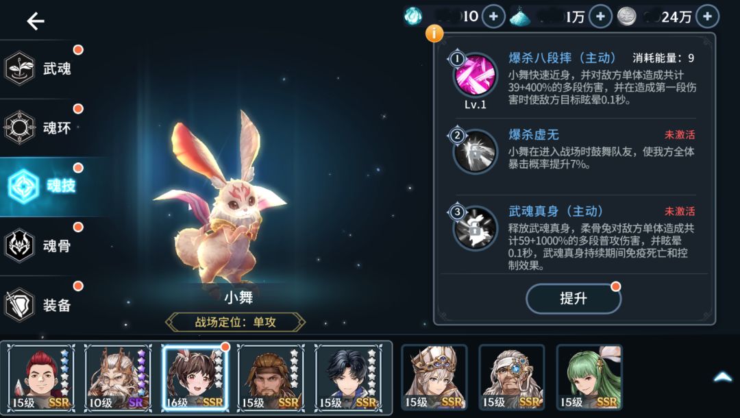 首先推荐一套单体阵容,适配情况为魂兽猎杀,斗魂之路等大部分怪物为单体怪物的情况。