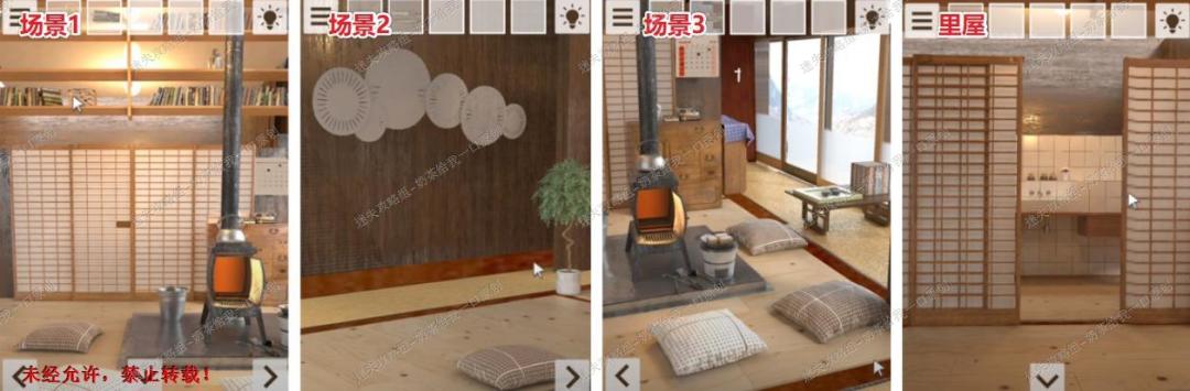 9、根据观察得知,红色=3,橙色=4,黄色=4,黑色=3。原路退回到场景1,查看如图所示位置进行柜子的特写镜头。9.19.2