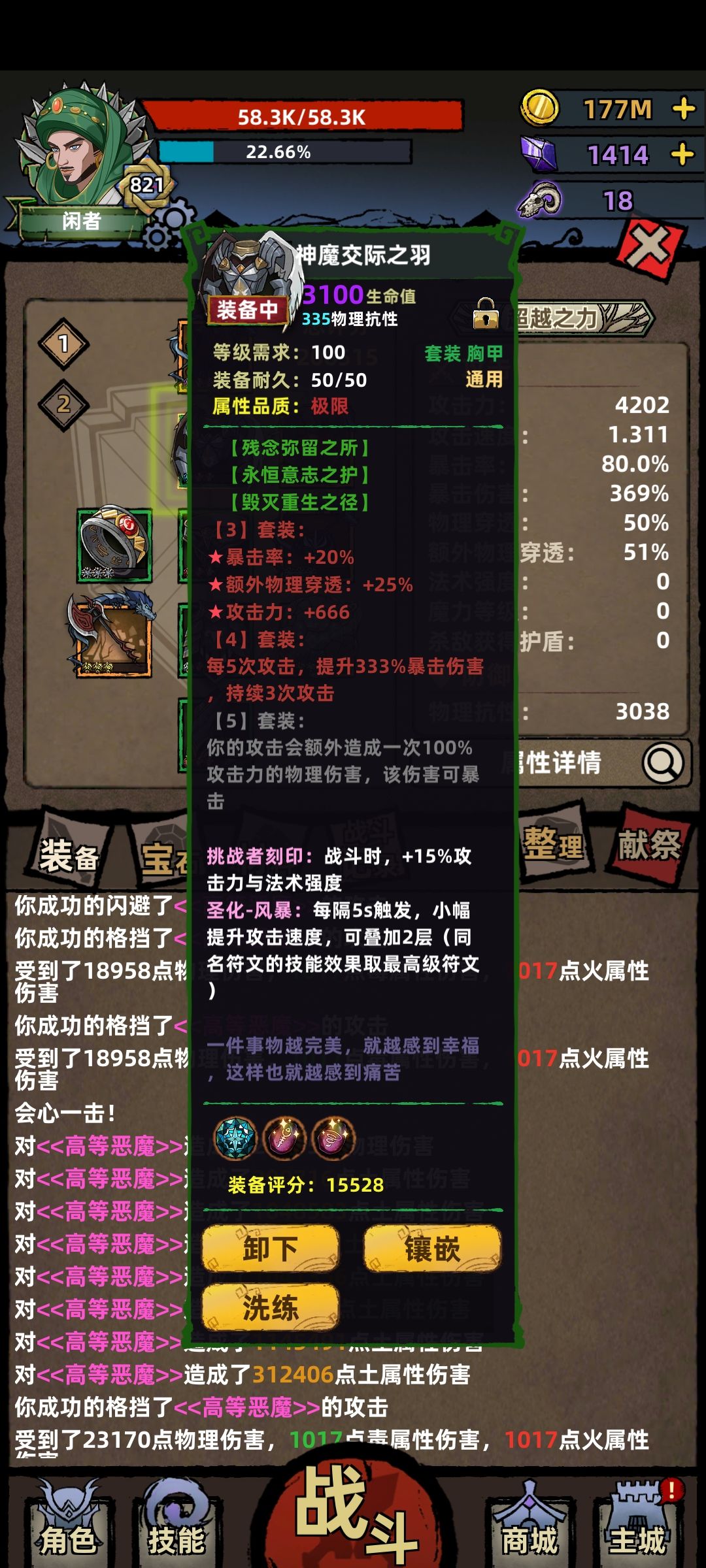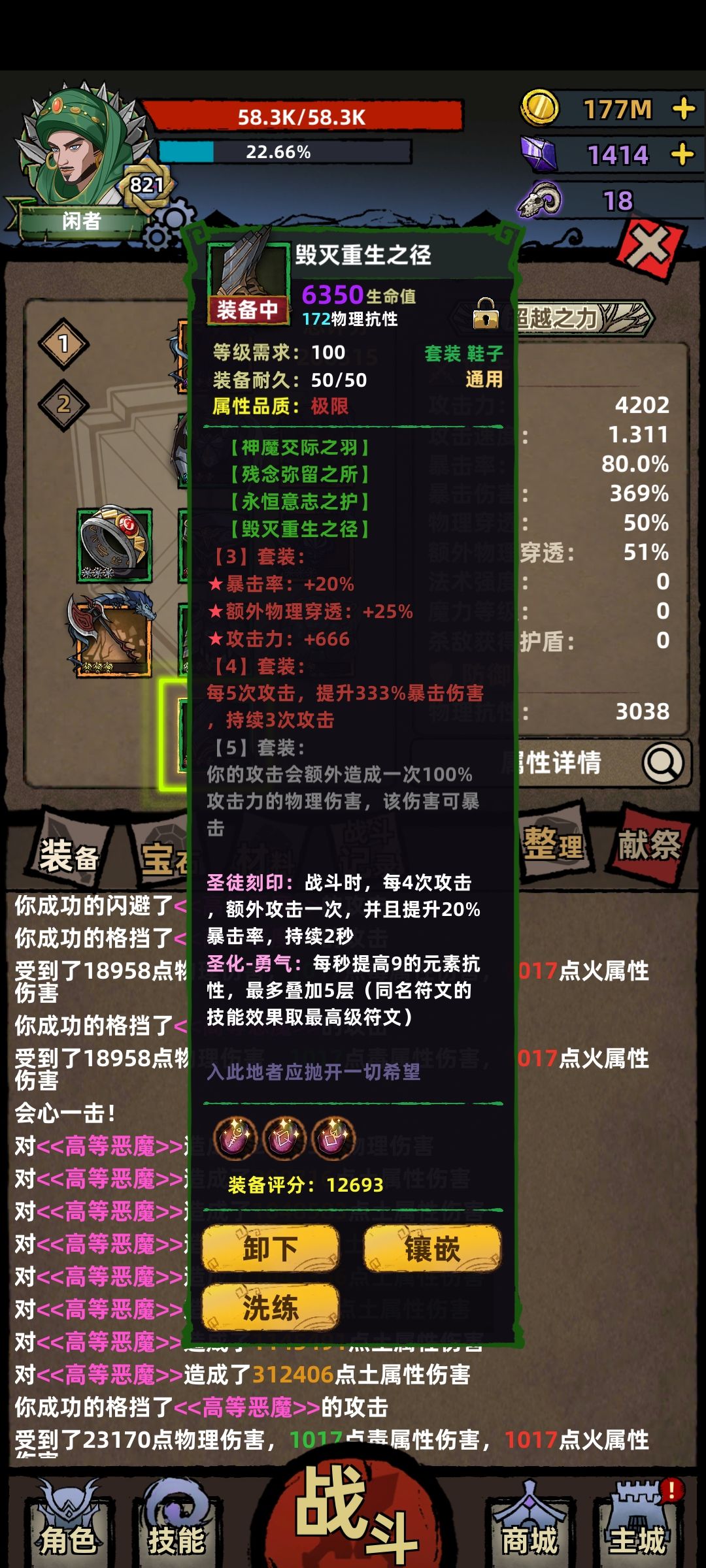 这种玩法很依赖装备,所以装备属性一定要刷成极品。