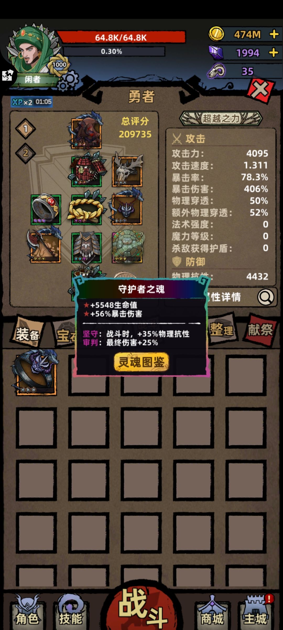 守卫者之魂,提升生存能力。