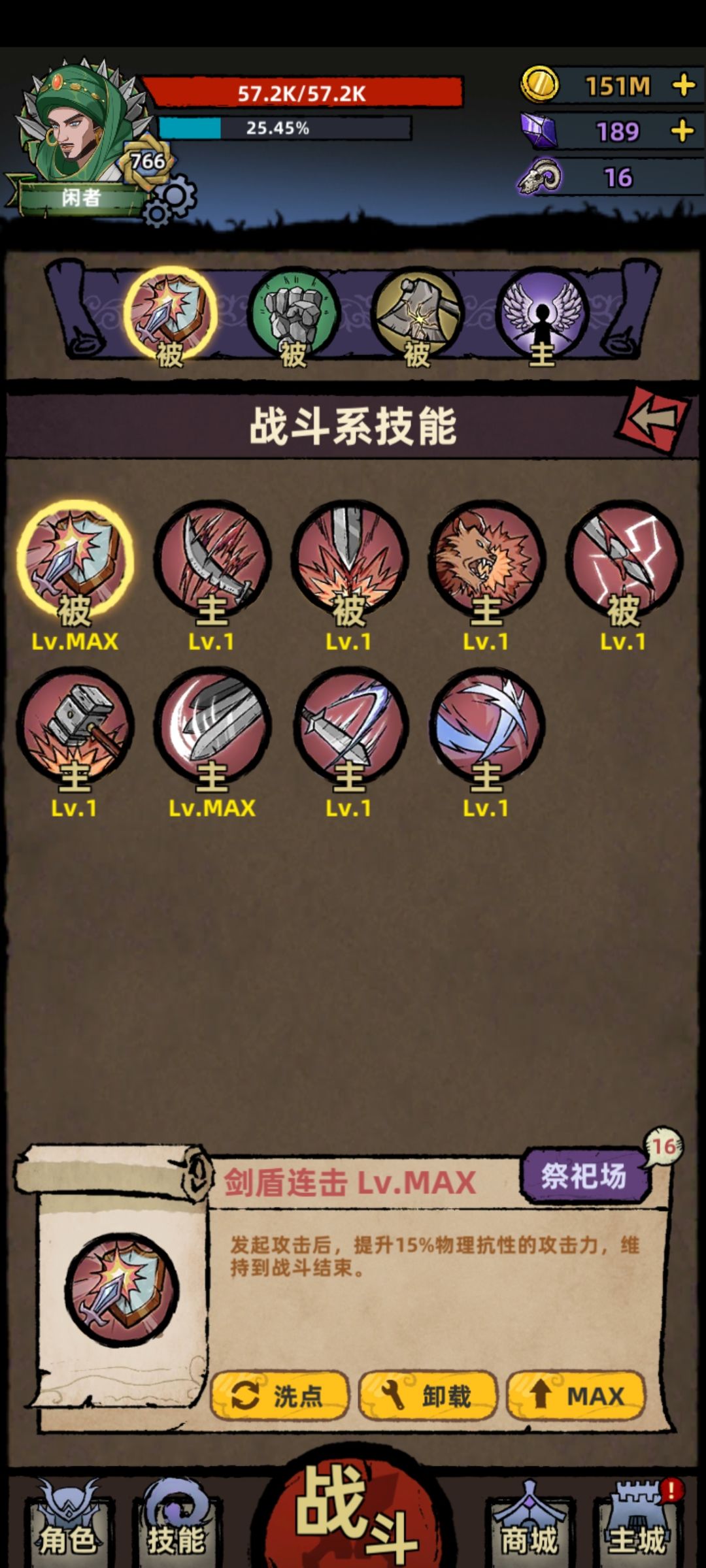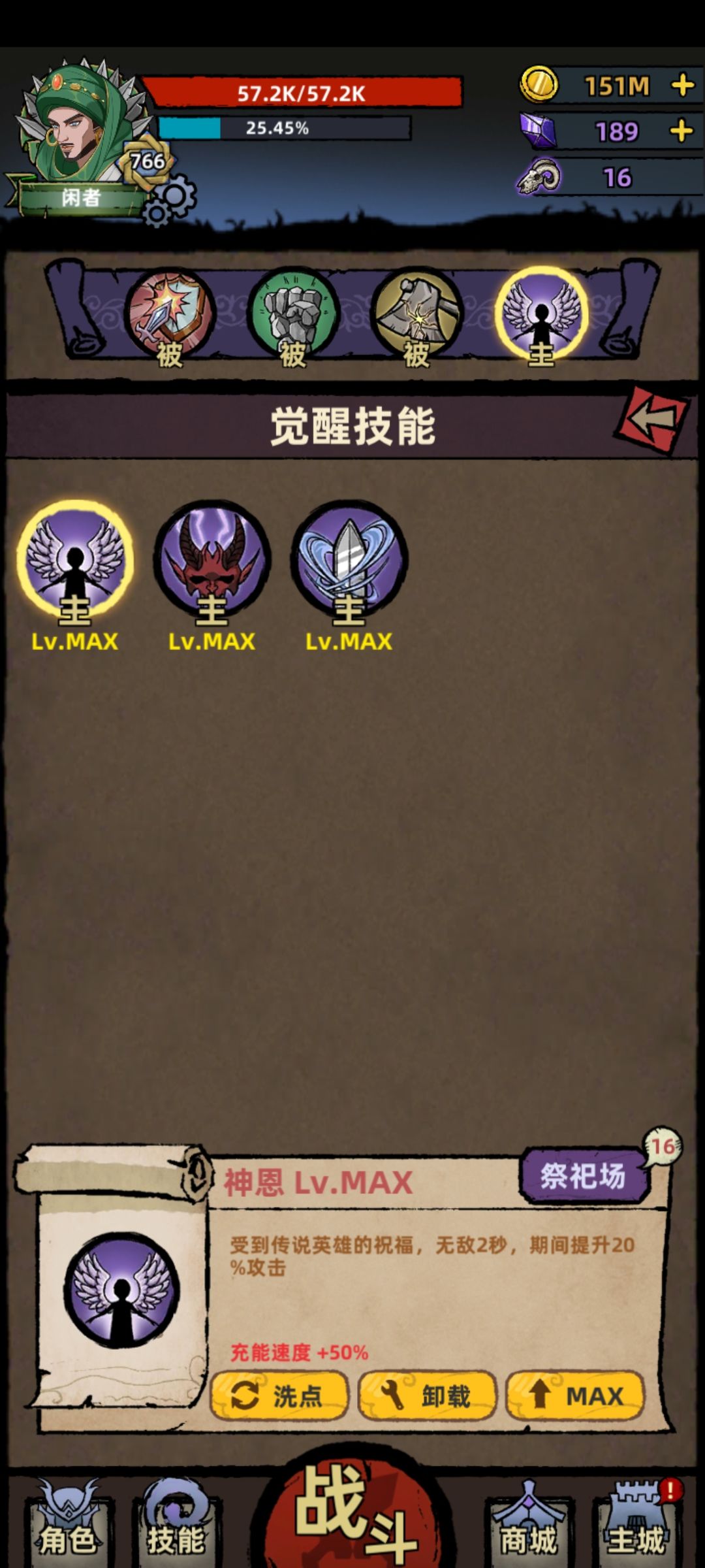 除了觉醒都是被动技能,平时可以轻松挂机刷王城。