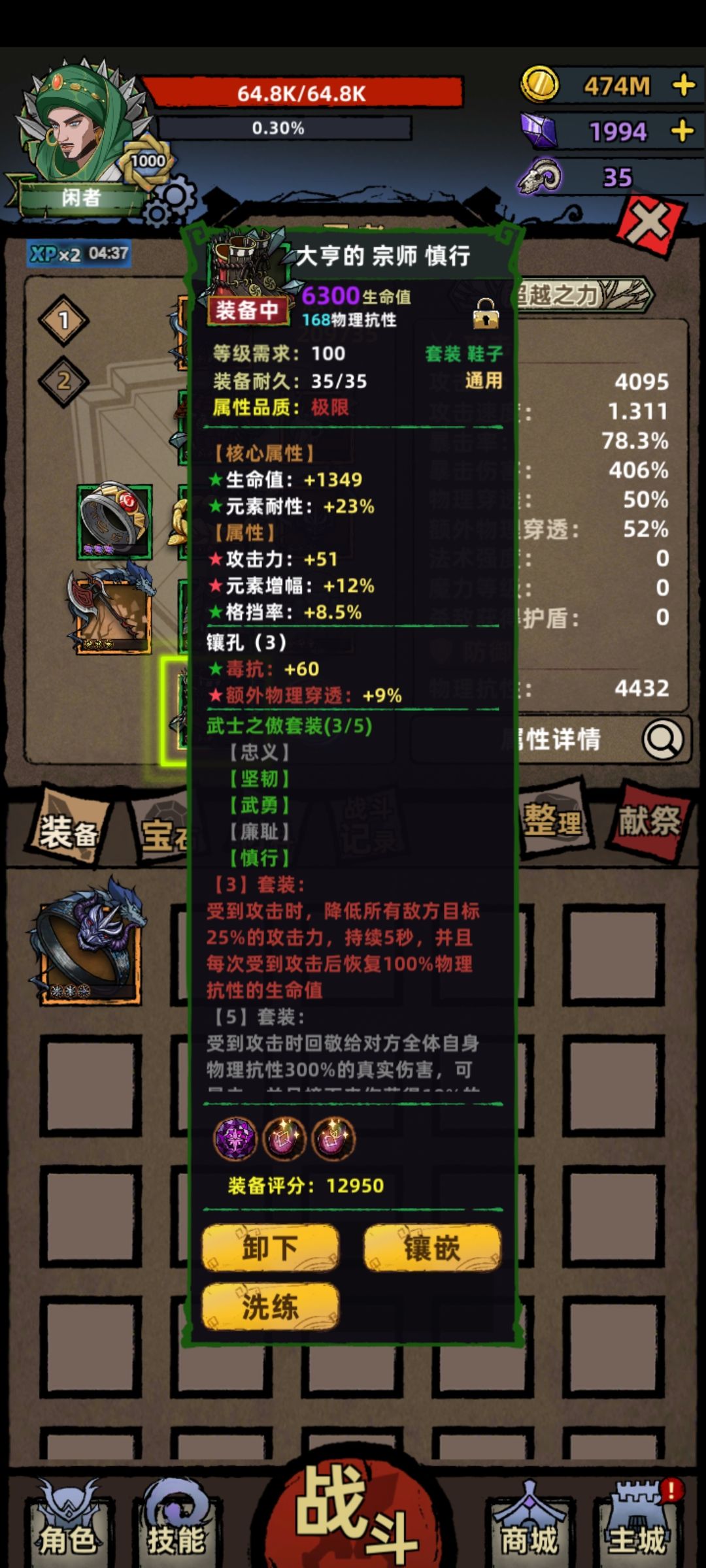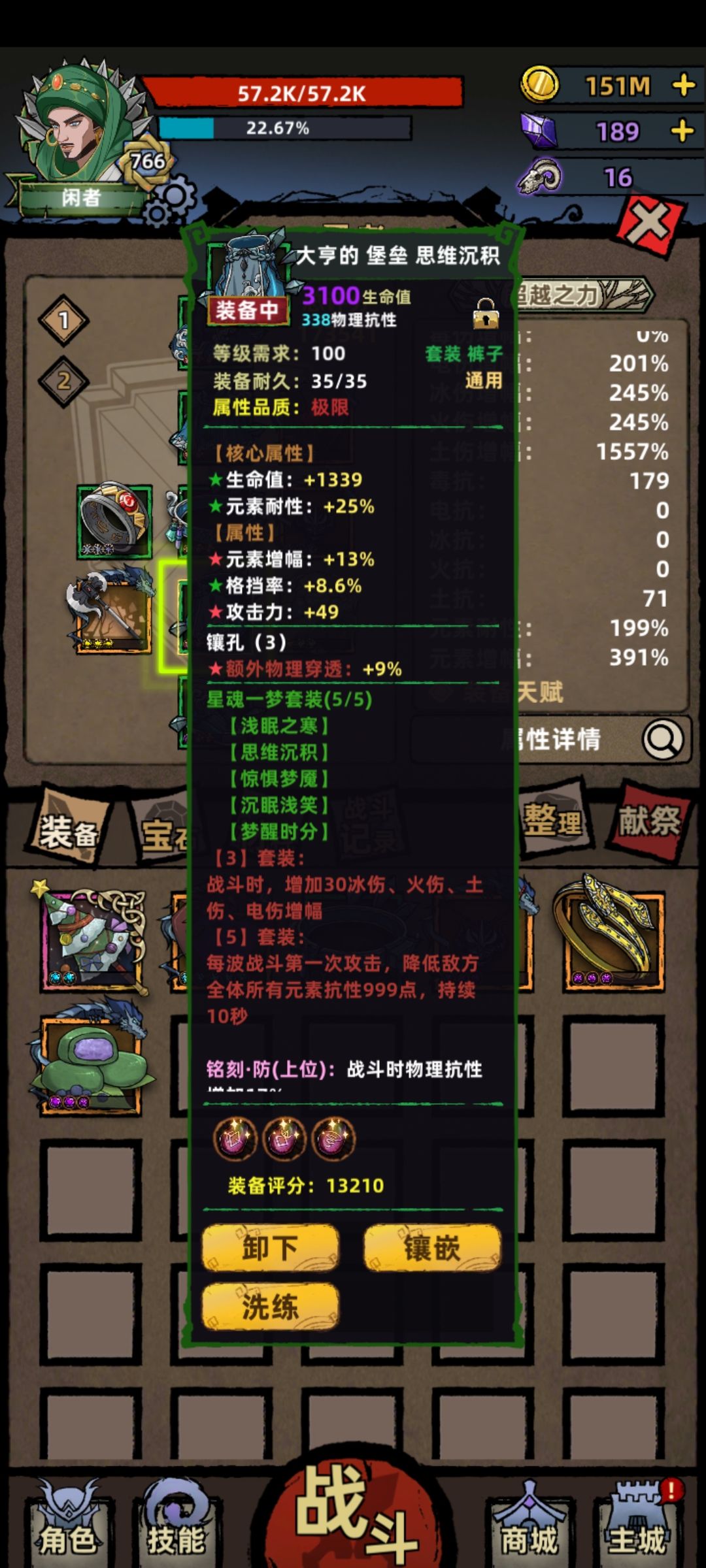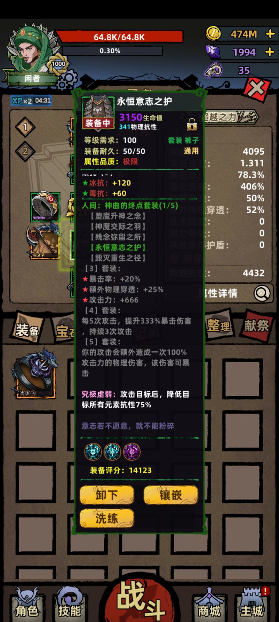 人间裤子:一定要刷出究极虚弱的75%减抗,配合龟甲的130减抗和符文的减抗,减抗才能够用。