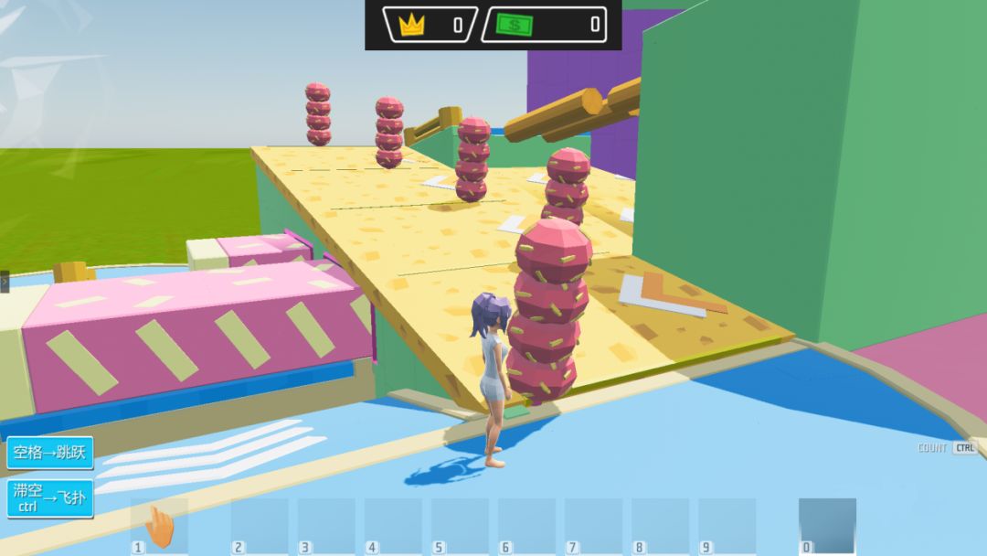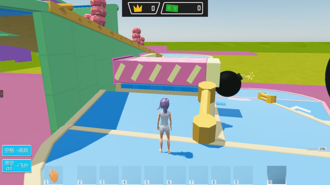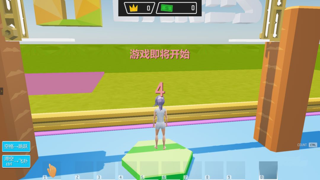 使用键盘上的W、A、S、D键位操控人物行走,空格键进行跳跃。想要开始游戏,还得先过一轮障碍,紧接着才是游戏正式开始的倒计时~