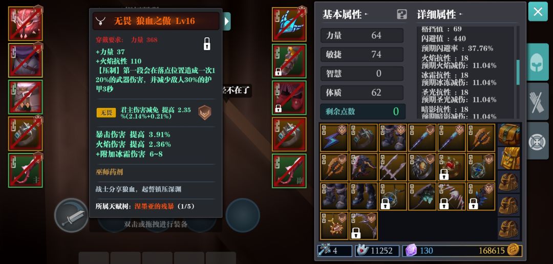 想法:利用刚力腰带的提升格挡率和格挡值以及海狼套最高百分之50减伤效果将敌方伤害降低为1