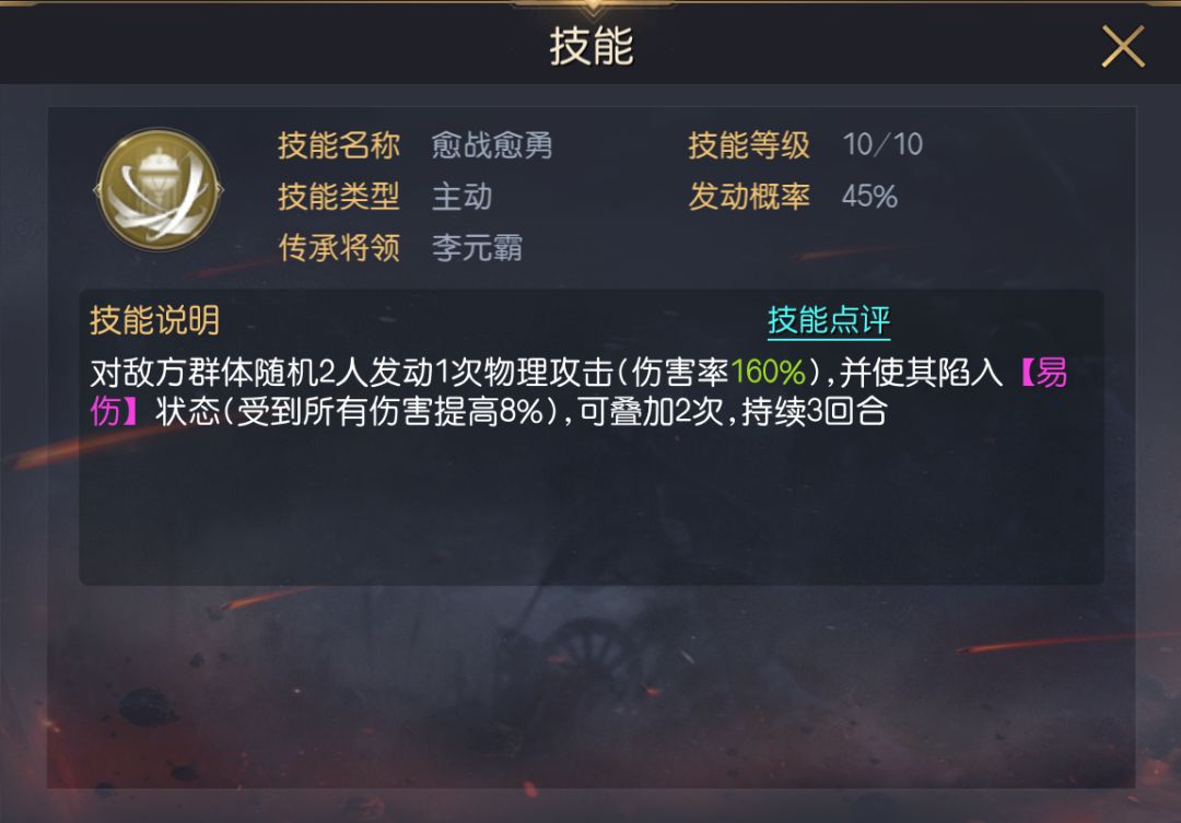 三技能推荐愈战愈勇,主打伤害反击的亚历山大输出比较分散,为了提高他的伤害效率应当配置一个主动技能或追击技能,考虑队伍中的输出多为单体和群体伤害,即可造成群体伤害又可施加易伤效果的技能的愈战愈勇正好合适。