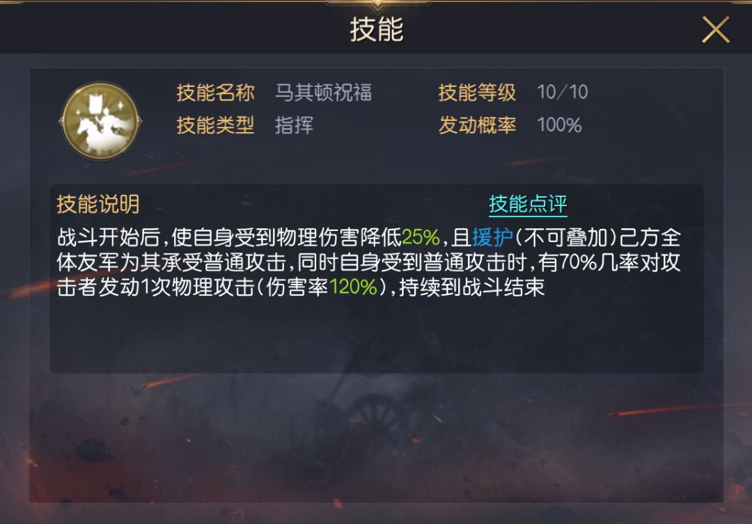 三技能推荐忠诚护卫,旨在提高亚历山大的输出能力与持续战斗能力,防止其主动承伤过多导致兵力折损,亚瑟王作为医师类辅助,并不需要他进行输出,并且兵力高低并不影响治疗量的计算。