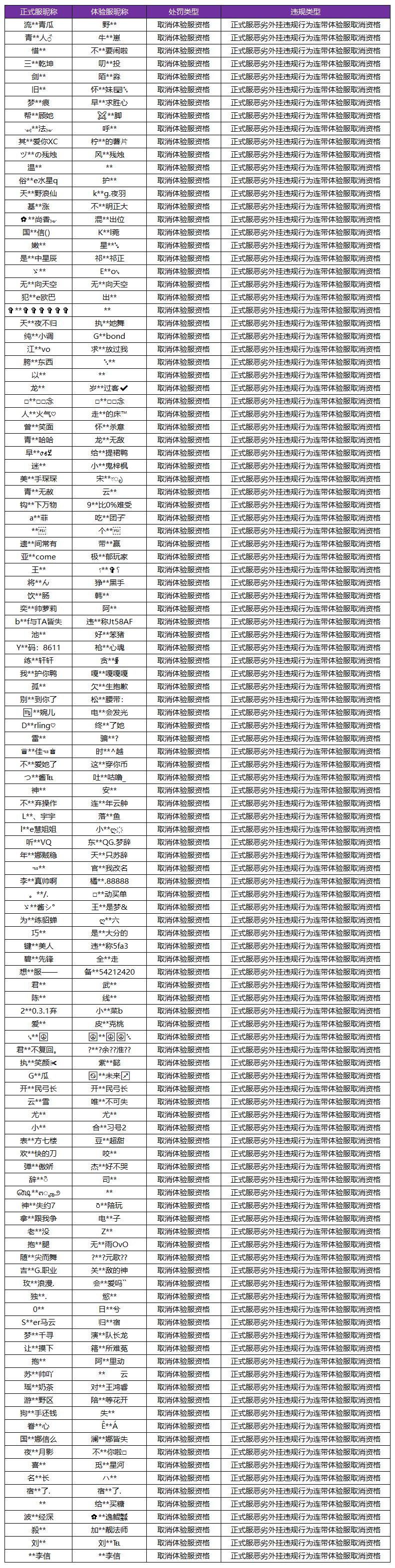 附注:5月6日正式服恶劣外挂违规连带体验服剔除资格账号名单