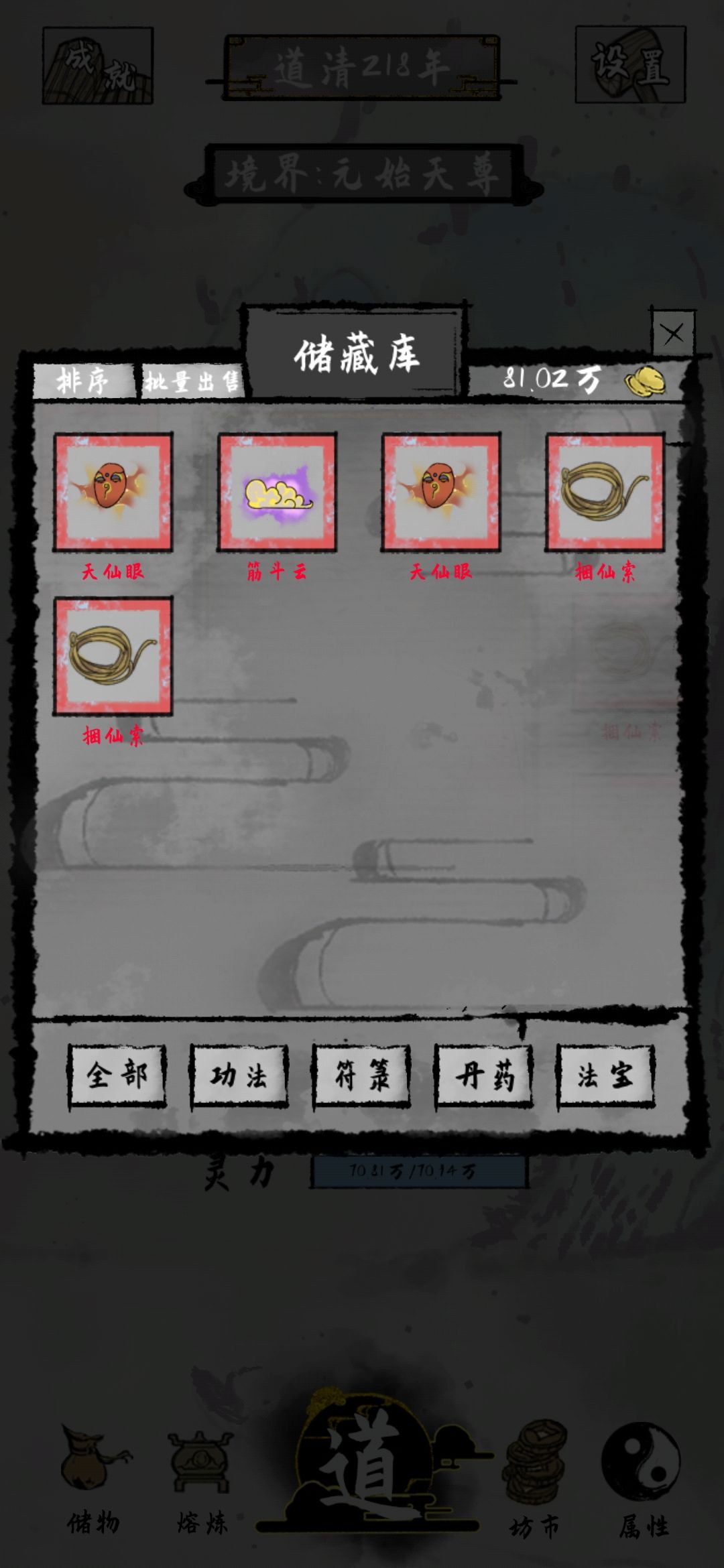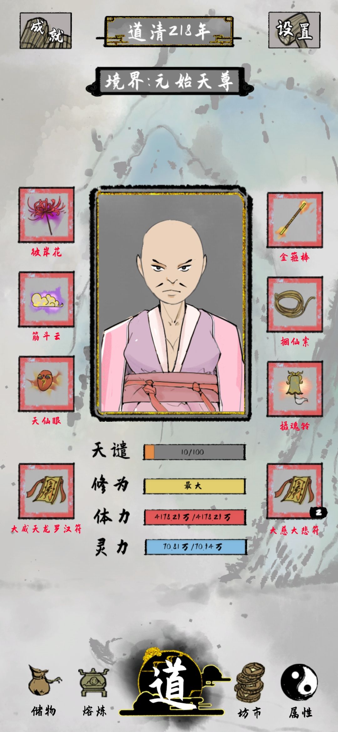 开局建议3灵根,个人认为开局刷一个福禄大师,然后无线白嫖福禄好一点,什么火神转世什么的都可以放放毕竟3灵根,后面那个木头人很有用,因为到后面修为丢一次都是几千万,尤其是大罗金仙到原始天尊26亿。结丹时候要你点的那个圈圈,尽量点到紫色,有关你的寿命,如果运气好后天出来一个寿命换神奇的,建议后期在搞前期寿命短,1紫4蓝就可以,后天天赋有加修为就加修为,多余丹药和多余的福禄装备都卖了,可以用灵石换修为。