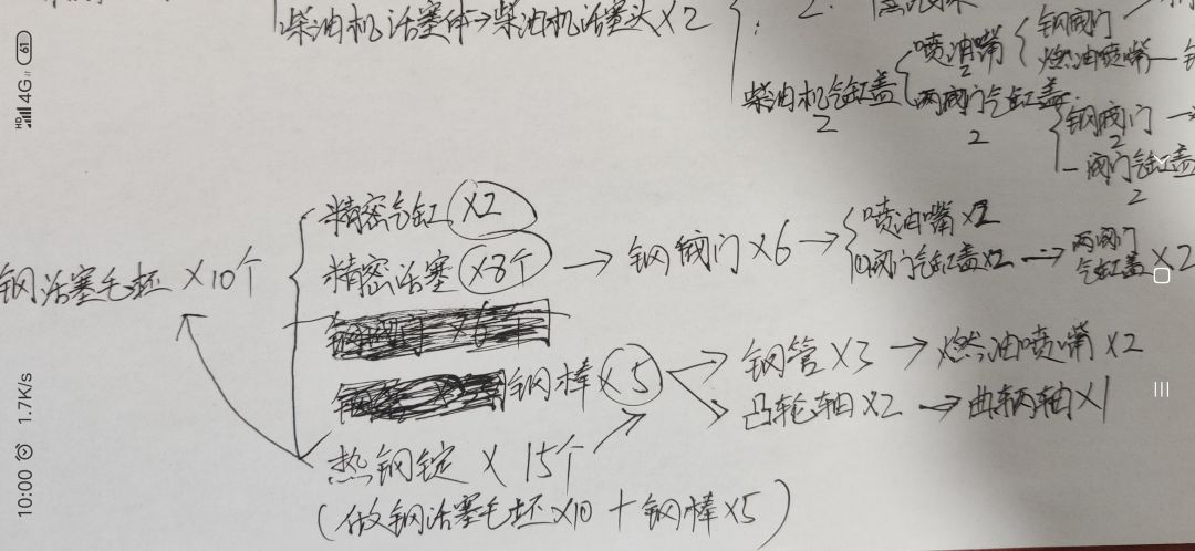 总结:需要15个钢锭(做10个钢活塞毛坯+5个钢棒),另外需要3个锻铁(做1个空燃油罐、1个大滑轮、1个小滑轮),还有1个同步带,比较简单自己做就好。