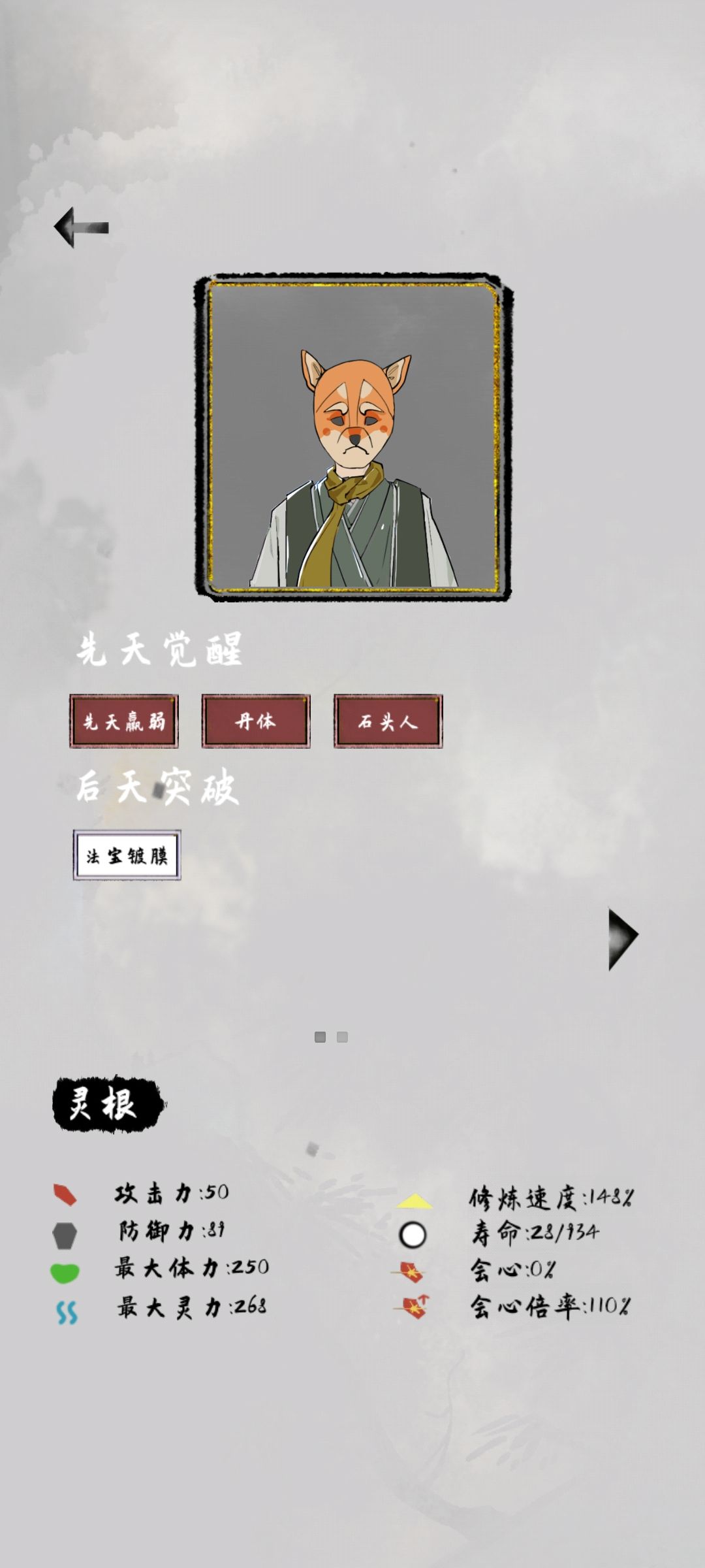 9、最后在给大家强推一下我最喜欢的天赋:丹体!吃丹药没有境界限制,意味着我们可以在初期吃后期的丹药,就能堆出来很恐怖的属性,然后我们每一次突破境界都会按照百分比提升我们的寿命,攻击,防御,就像是滚雪球越滚越多!前期就属性高,后期属性就更爆表,推图打boss都是一招秒,效率也高,只要注意心魔打的时候小心一些,通关很容易。