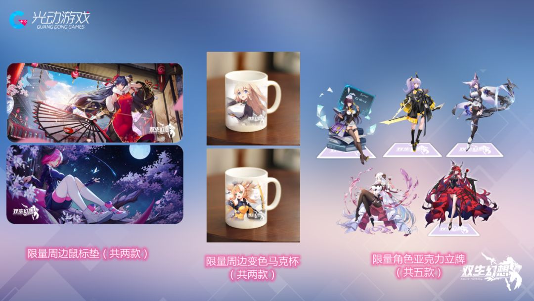 二等奖(2个):周边套装一套:限定周边立牌*5(不重款),限定周边鼠标垫*2(不重款),限定周边变色马克杯*2(不重款)