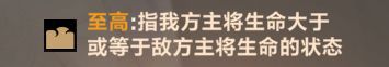在至高异能限制下的效果只有在我方主将生命值大于等于敌方主将时,才能生效。