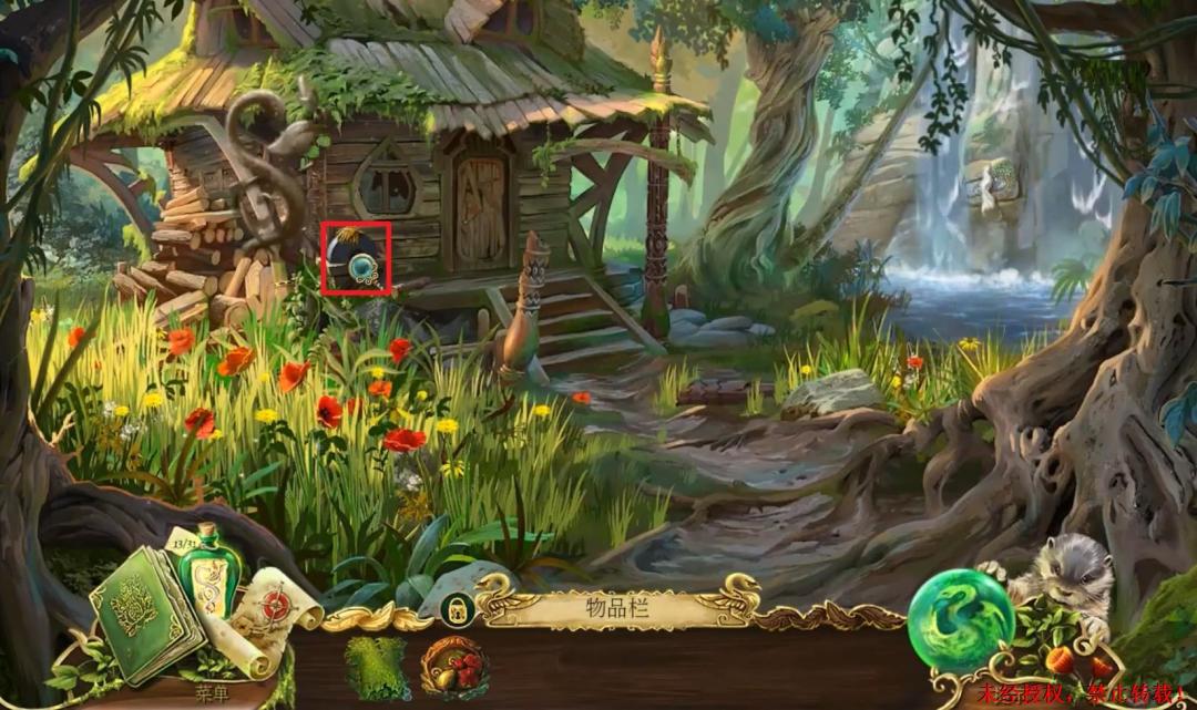 11、进入小游戏环节:进入林中小屋书房之后先点击图中红框处放大场景,进入小游戏环节,具体怎么完成我们接着往下看。11X1