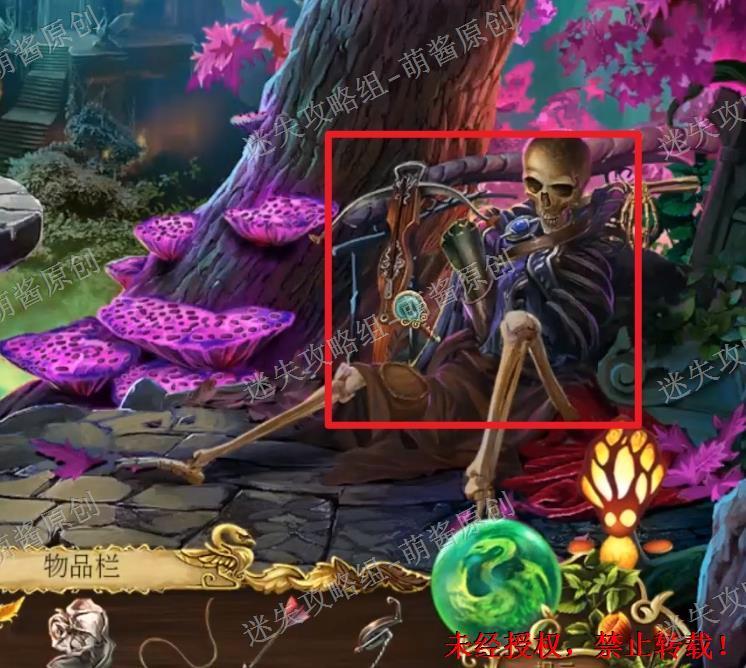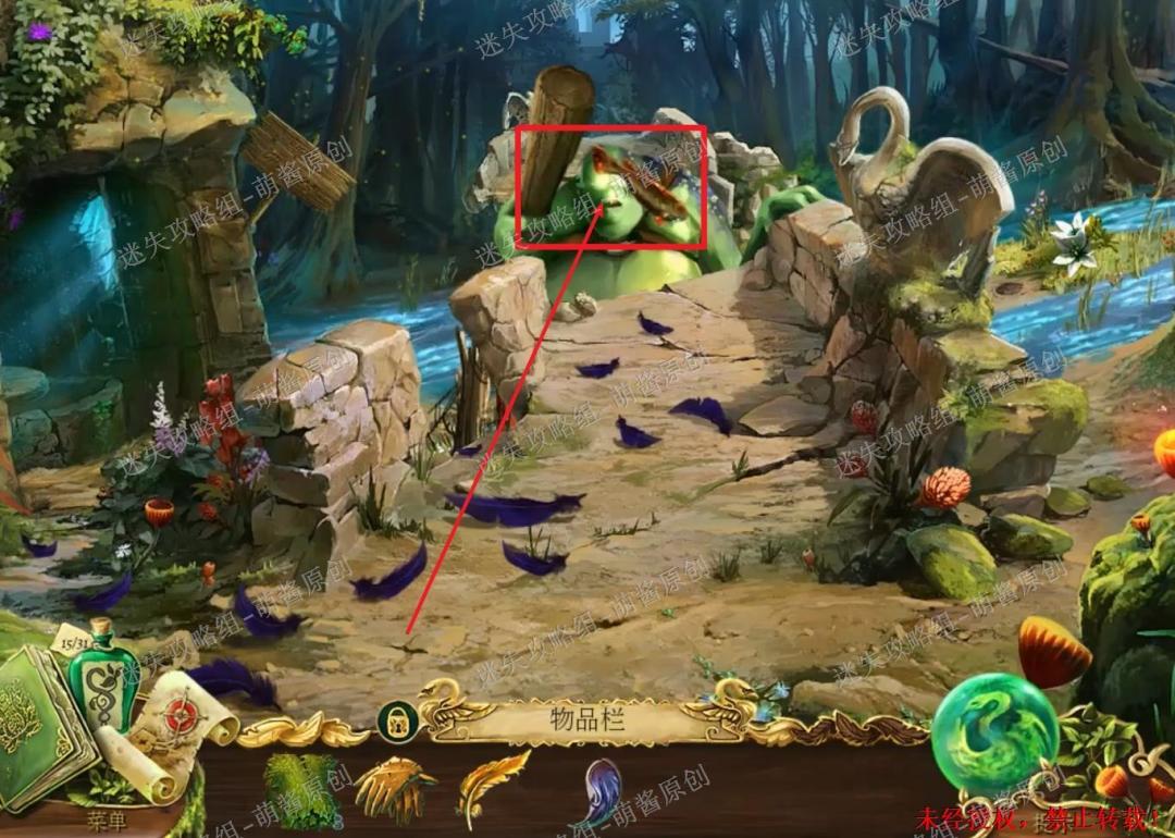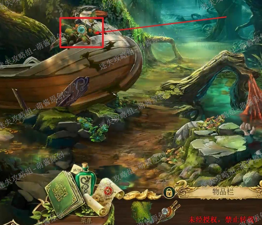 36、获得满皮腔:回到这章刚开始的地方,也就是小岛岸边那里。点击红框处放大场景,将“四分之三满的皮腔”放在里面,获得“满皮腔”。36X1
