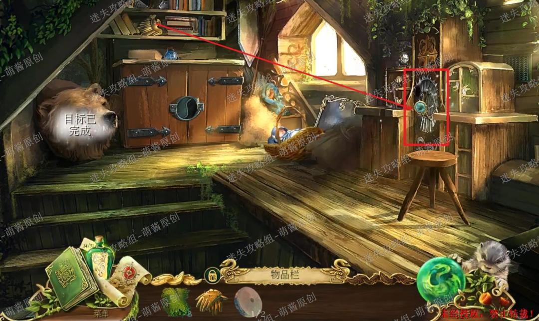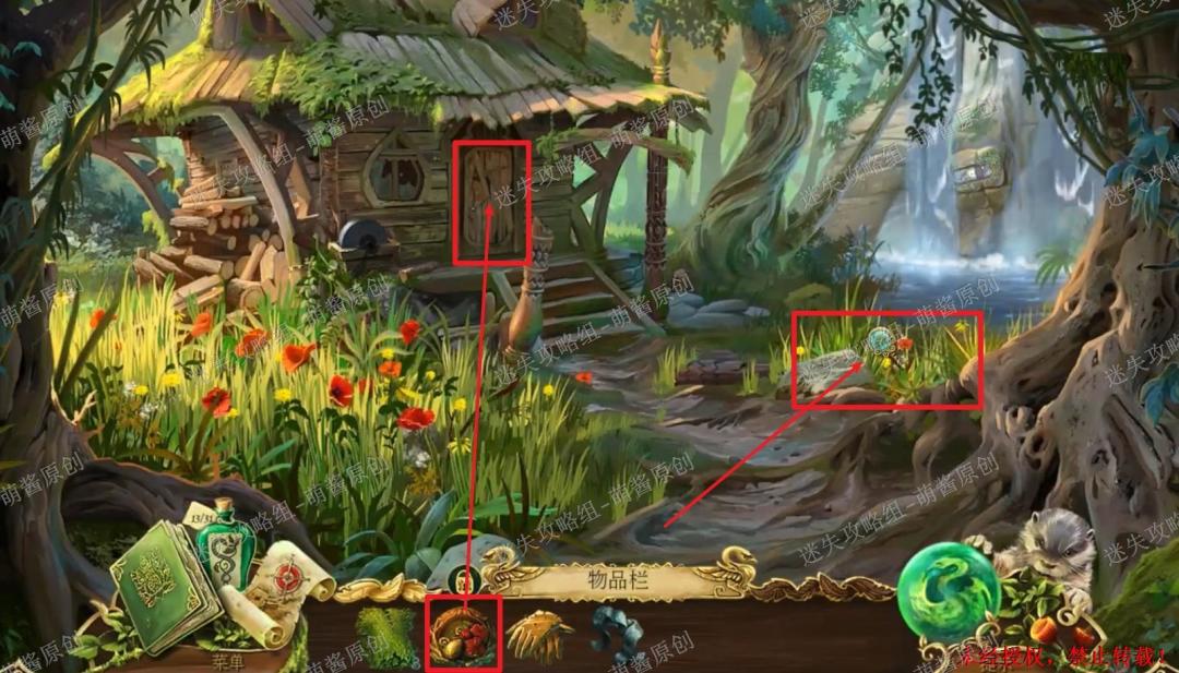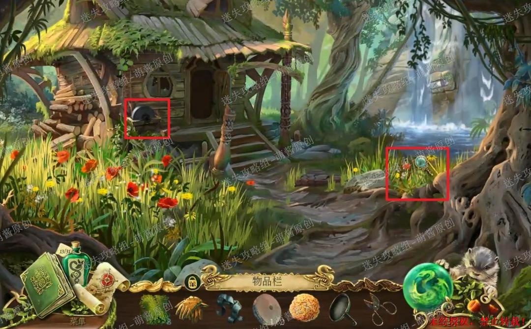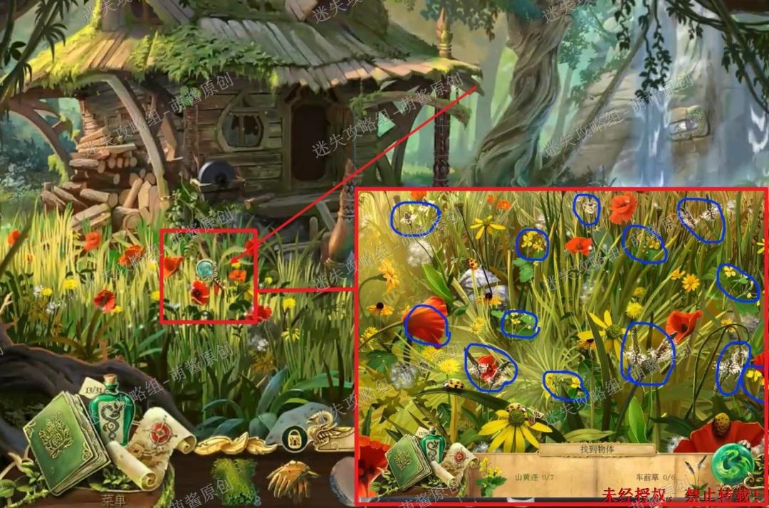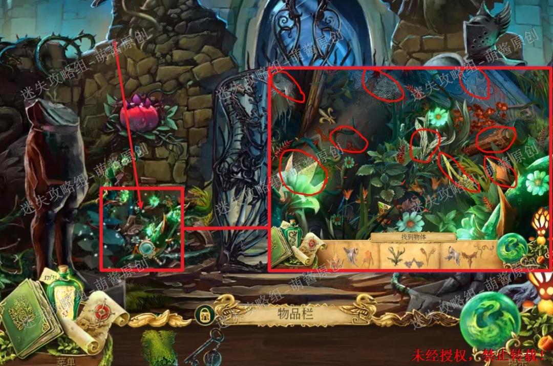 40、获得魔法药草:点击图中左下红框标注的位置,进入找物环节。如图完成找物,获得“魔法药草”。40X1
