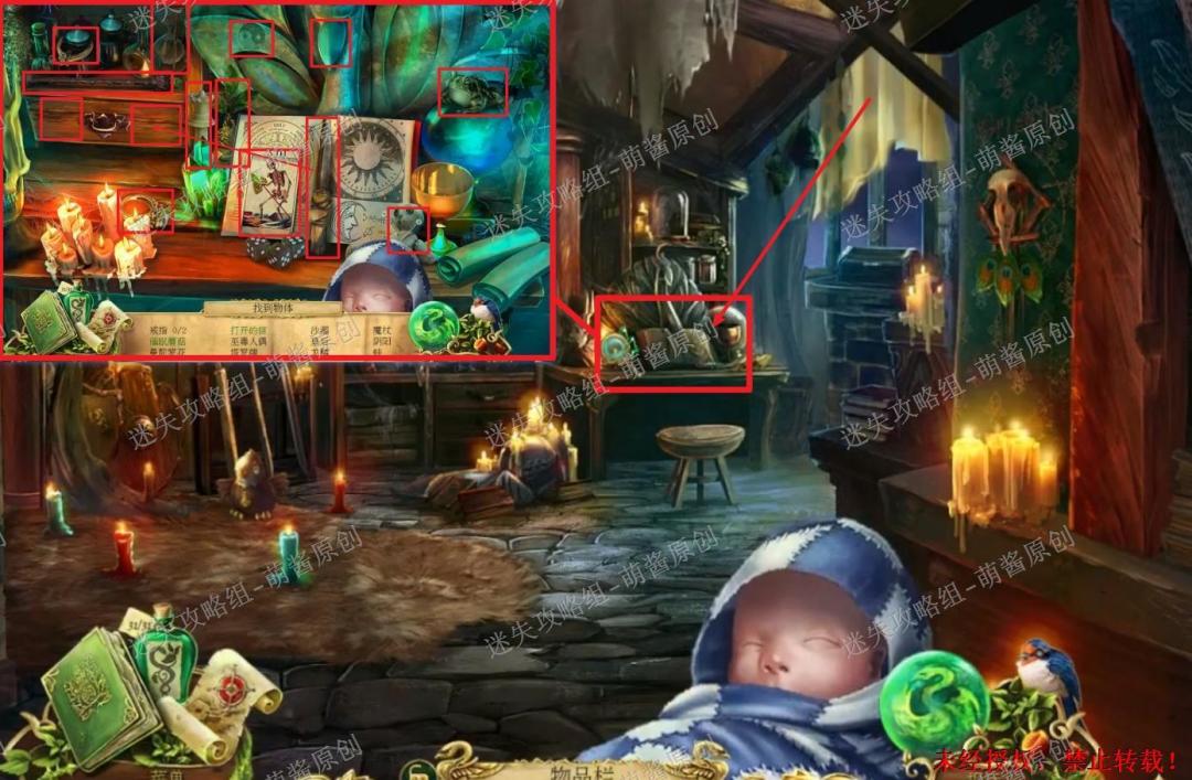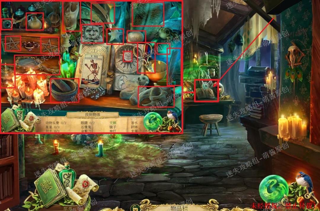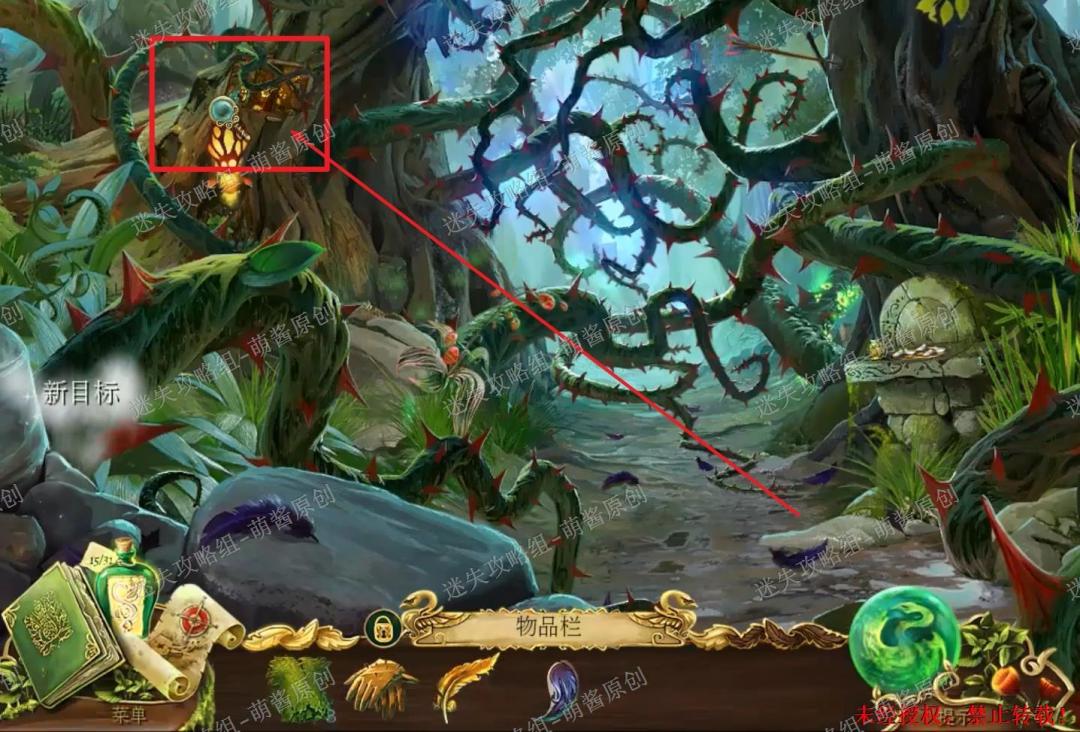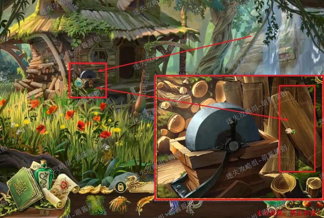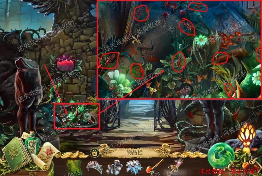 40、获得魔法药草:点击图中左下红框标注的位置,进入找物环节。如图完成找物,获得“魔法药草”。40X1