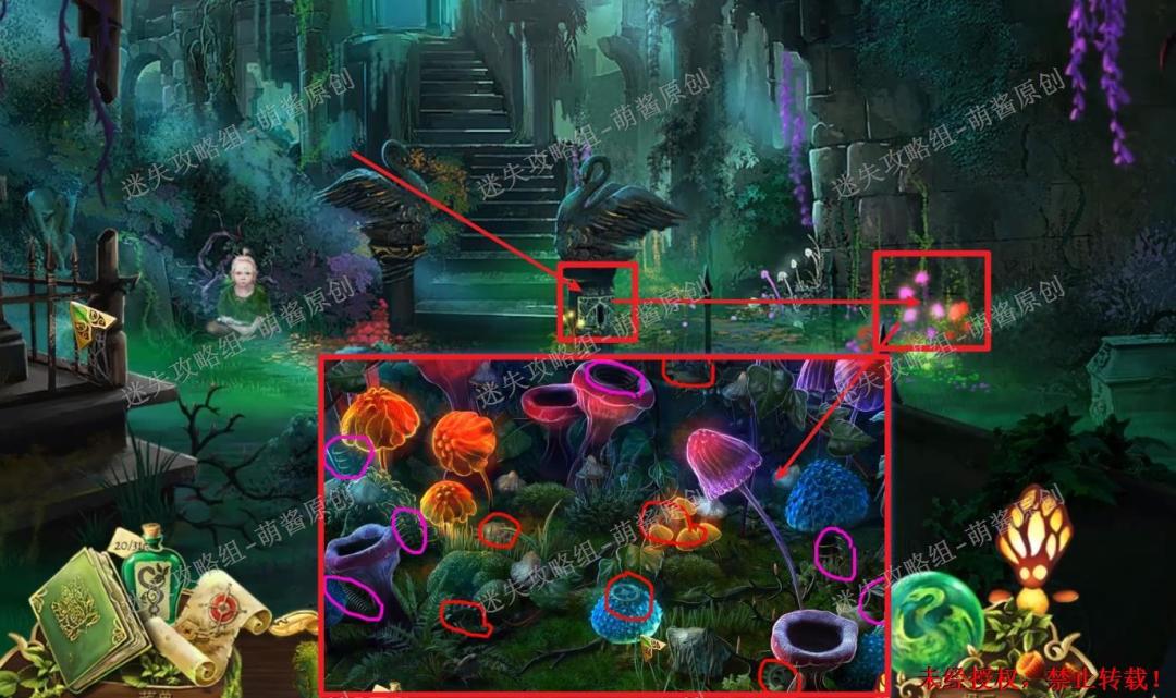 13、完成找物·获得催眠蘑菇:点击红框处,如图寻物,获得“催眠蘑菇”。13X1