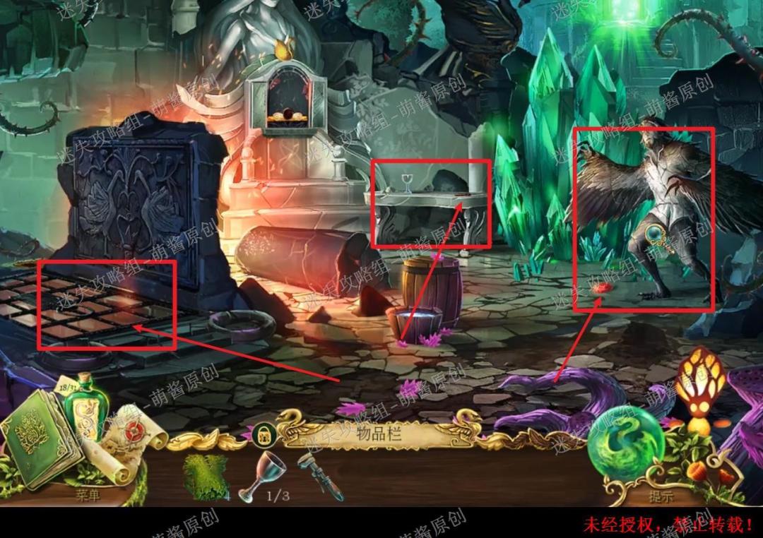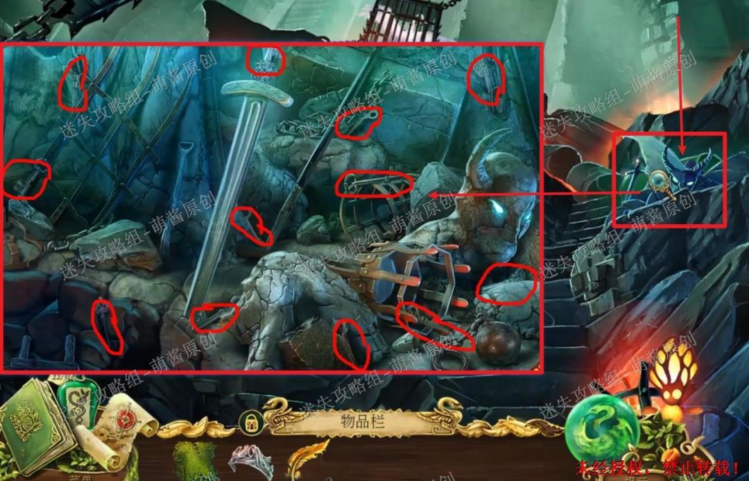26、获得石像鬼符文:点击被拽到的石像进入找物场景,如图完成找物,获得“石像鬼符文”。26X1