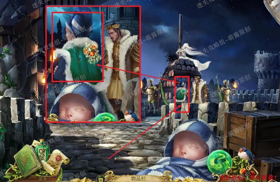 触发剧情·游戏通关:剧情结束以后点击小宝宝将其交予皇后,然后选择背包里的“王冠”点击小宝宝,触发剧情,游戏通关。16X1