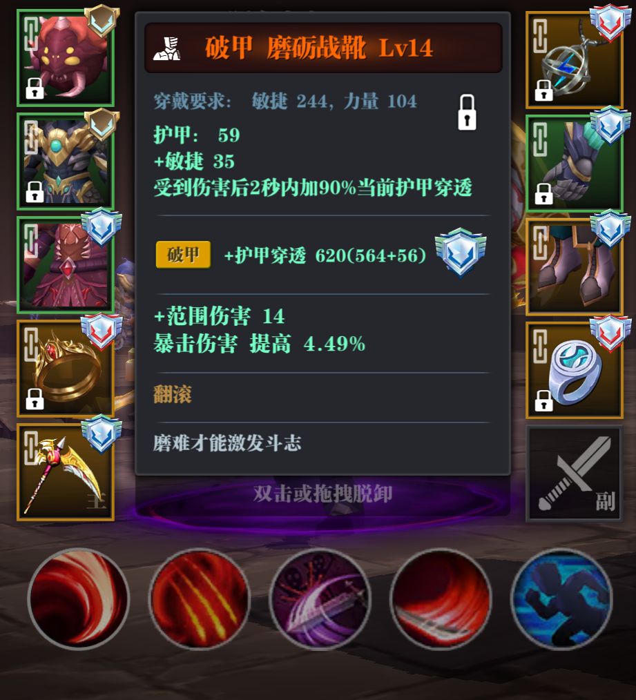 所以我穿的鞋子+戒指就是为了弥补破甲,不过即使这样也只有2300-2600的破甲,导致伤害少了一半