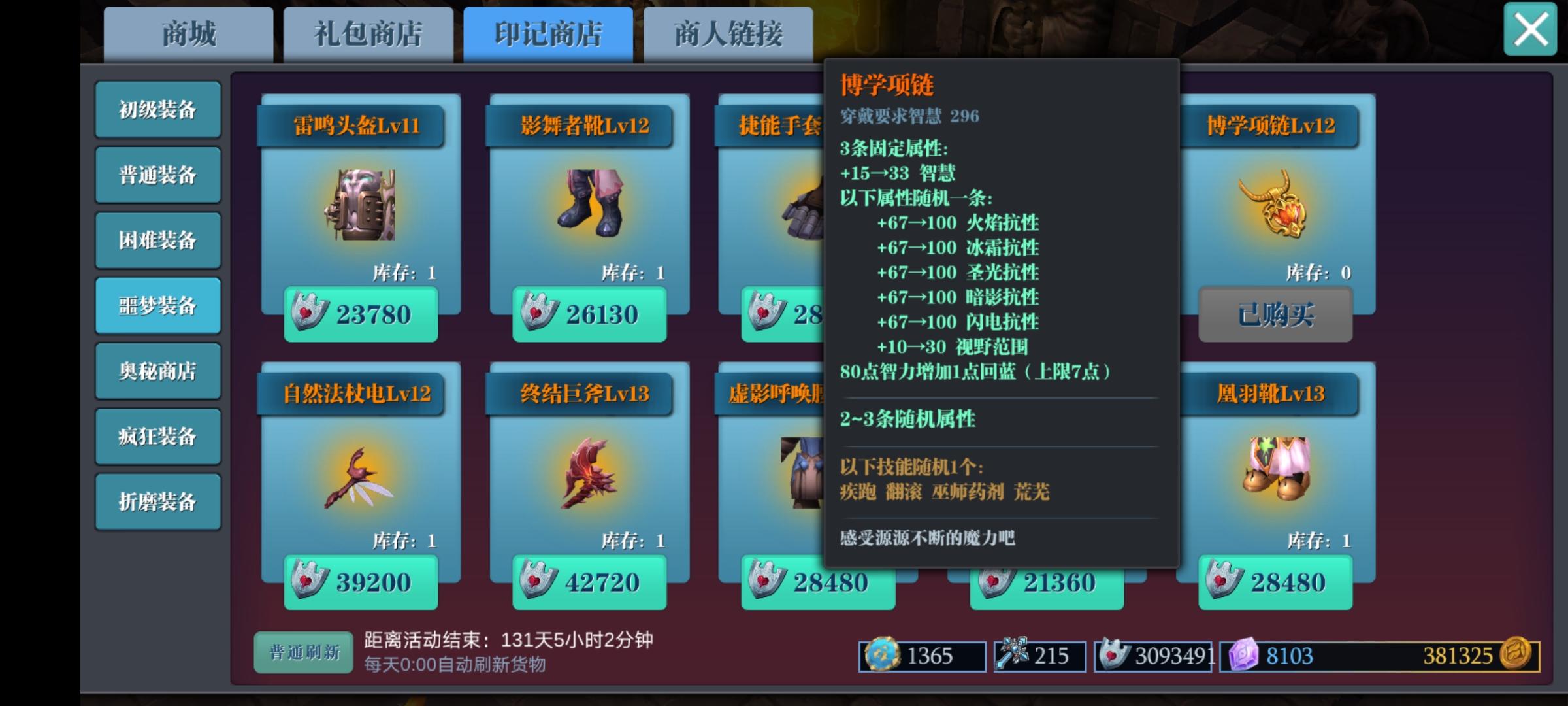 之前刷商店,刷奇异之门一直不来,然后转物理职业了。还好转的早