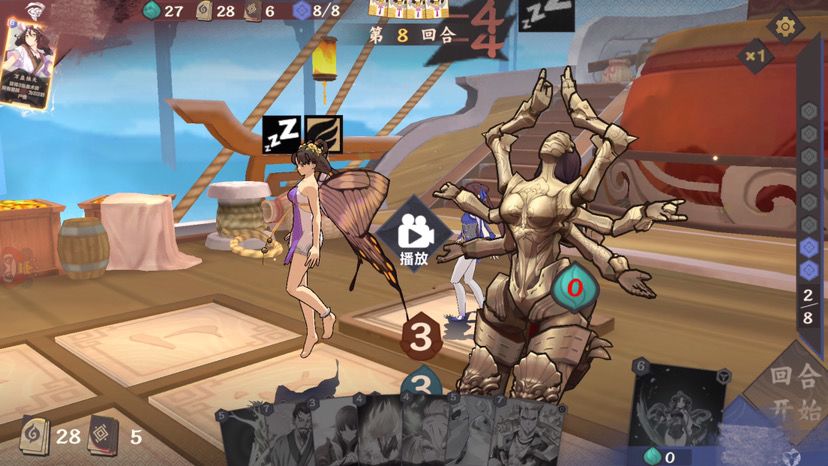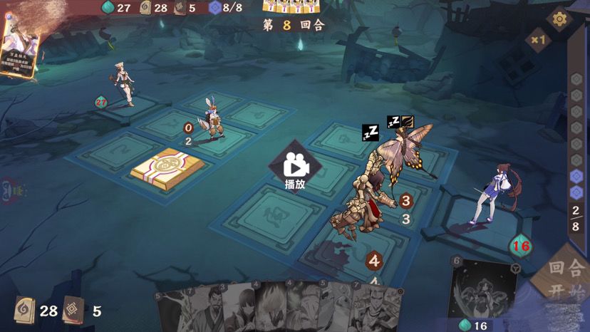 第六回合甲位对方绝嗣毒瘟,我天命回归复活两个部署,按理说只掉8血,结果我掉了16血直接挂了,有毒